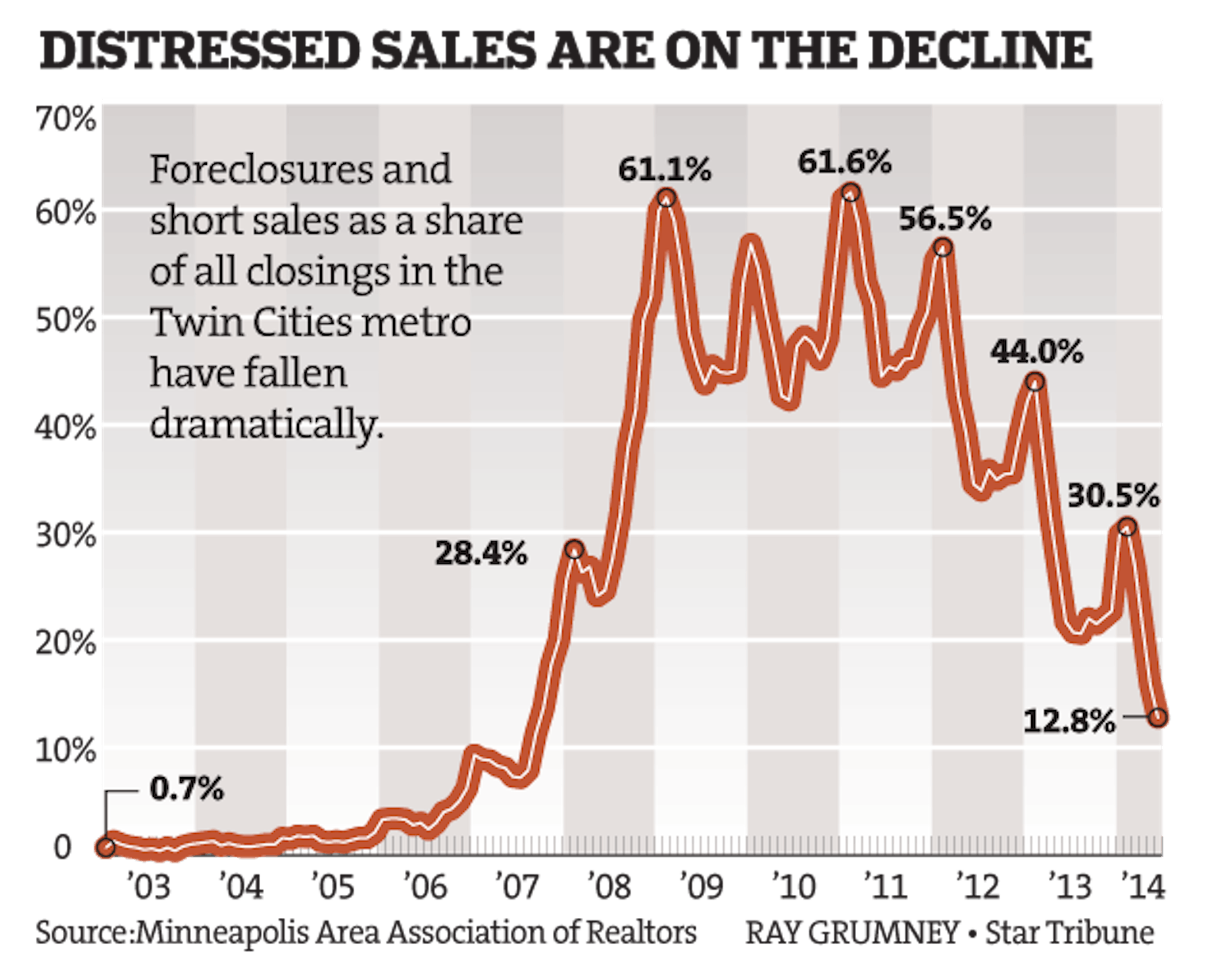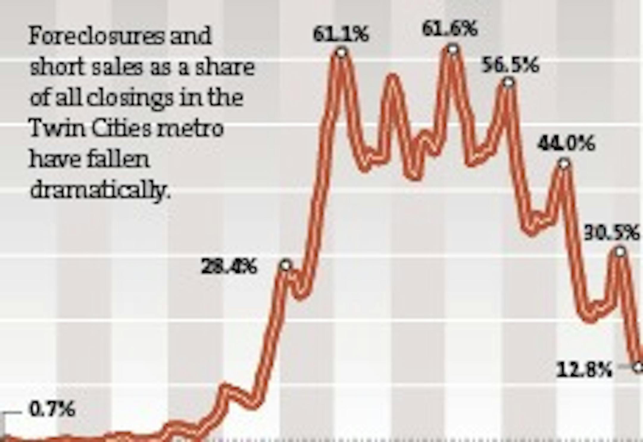 Foreclosures and short sales as a share of all closings in the Twin Cities metro have fallen dramatically.