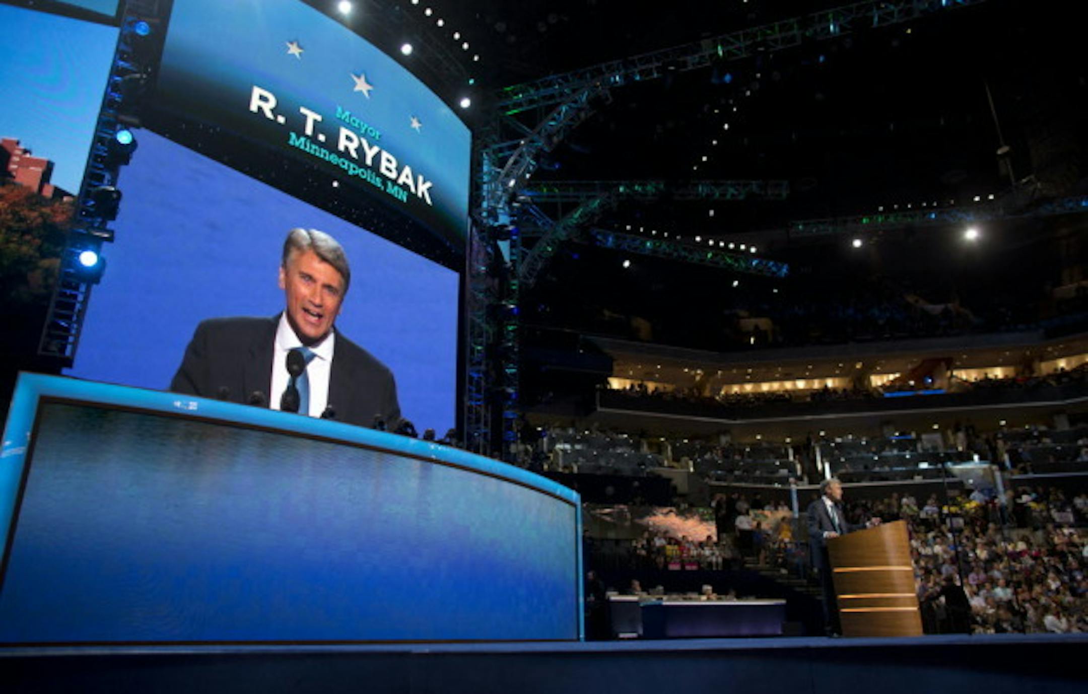 Photo: Rybak speaking at the Democratic National Convention this September (Jeff Wheeler).