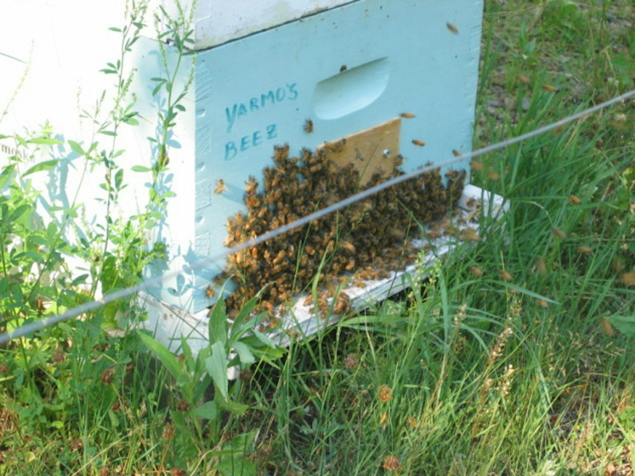 Last fall, we had four viable hives. We put winter cover on two of the hives (basically it's a black wax covered cardboard box to help protect against the wind and wet of winter). We only had two at the time but snow usually helps protect the hives throughout the winter. Well, it was a no-snow winter and the two hives we did not cover died.