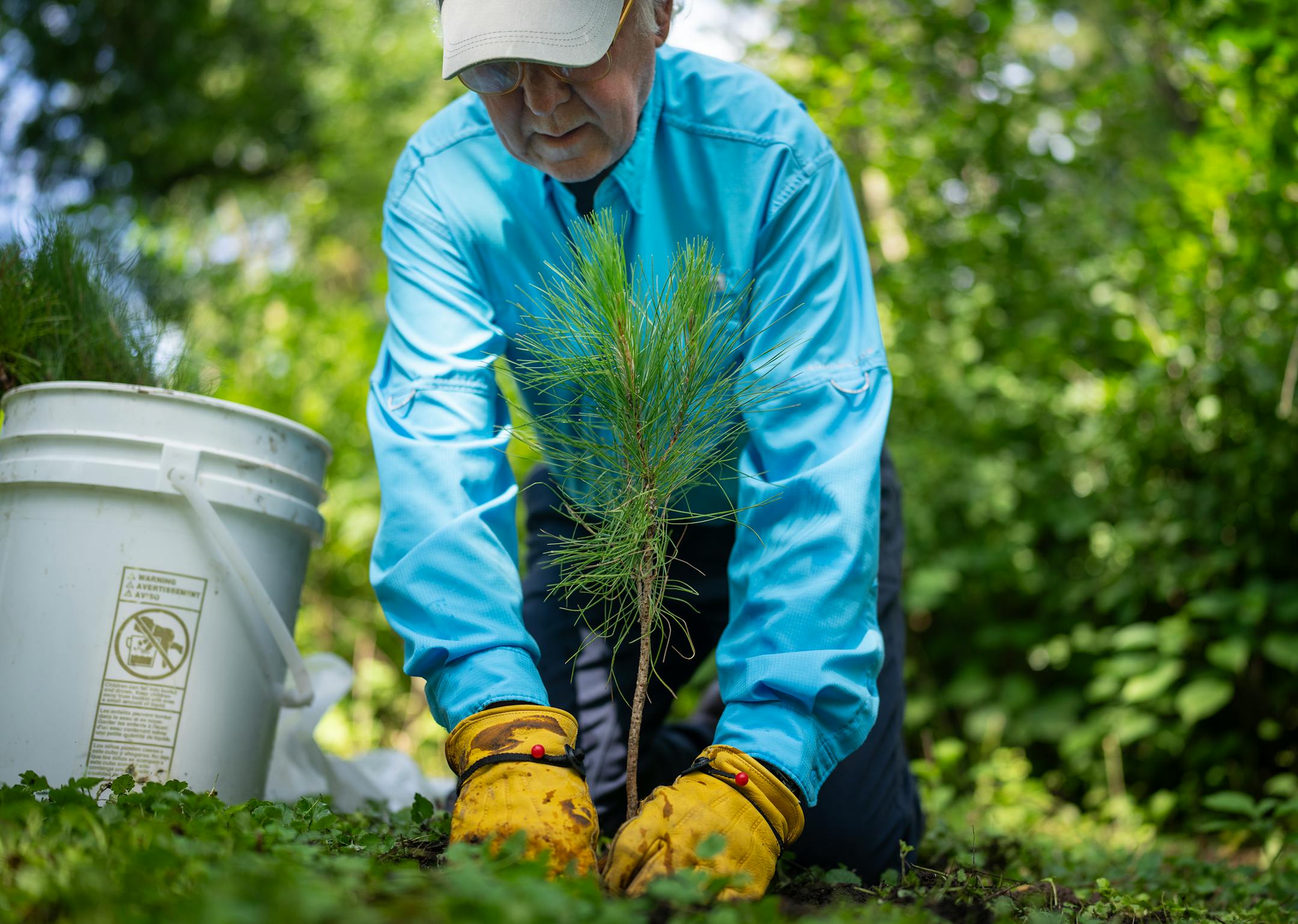 Driven by his personal belief that no act is too small to help stop climate change, Shelby plants trees whenever he can, including in the yards of his friends and family by request. He recently planted red pine saplings on his daughter’s 2.5-acre lot in Excelsior.