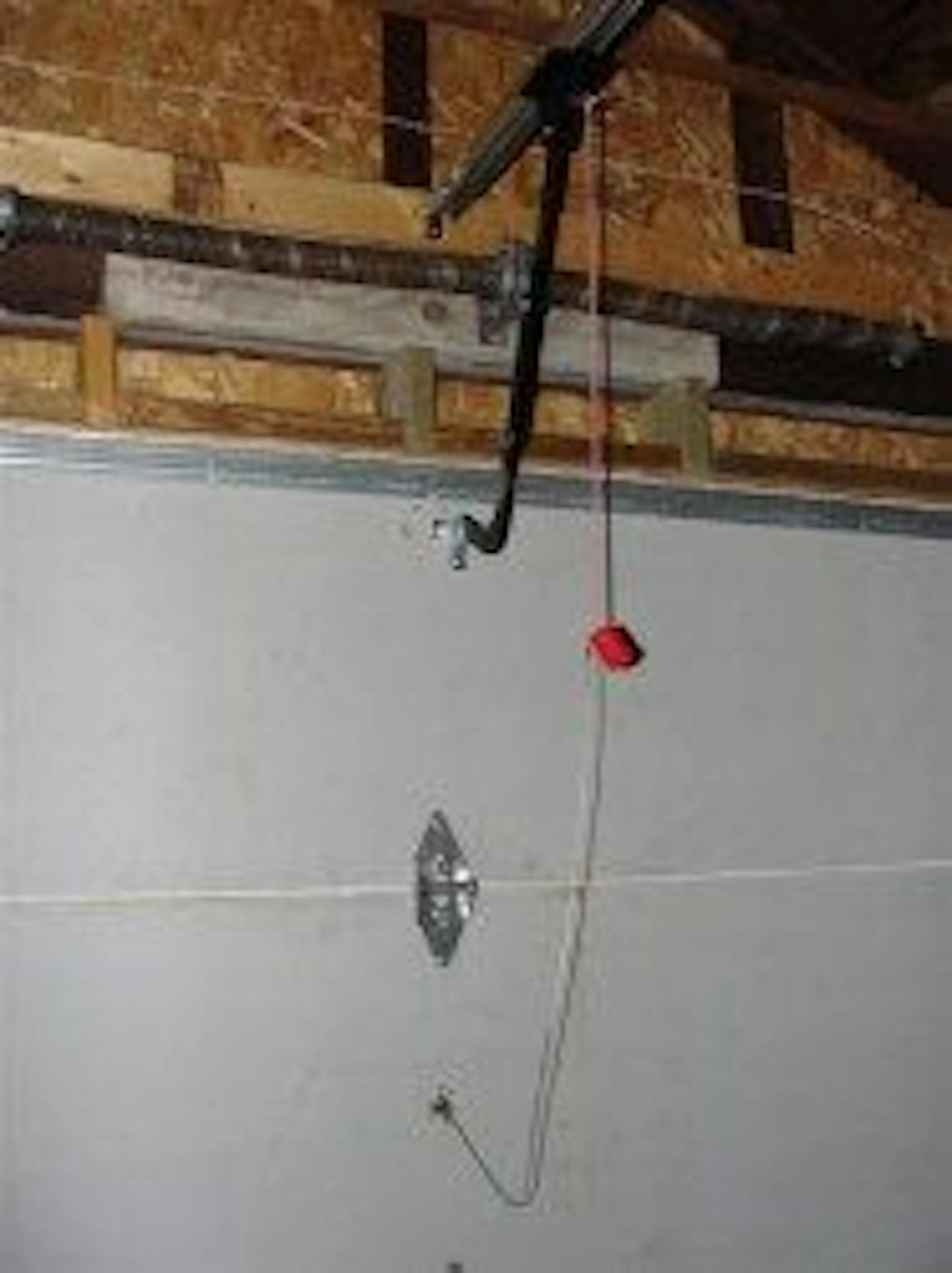 If you said "pizazz" you would be correct, and you might also make a good home stager, but that's not what I'm talking about today. This door is missing an emergency release. If the power went out, the GFCI outlet inside the garage tripped, or the garage door opener failed, the owner would be locked out of this garage. The fix for this is quite simple - install an emergency release kit.