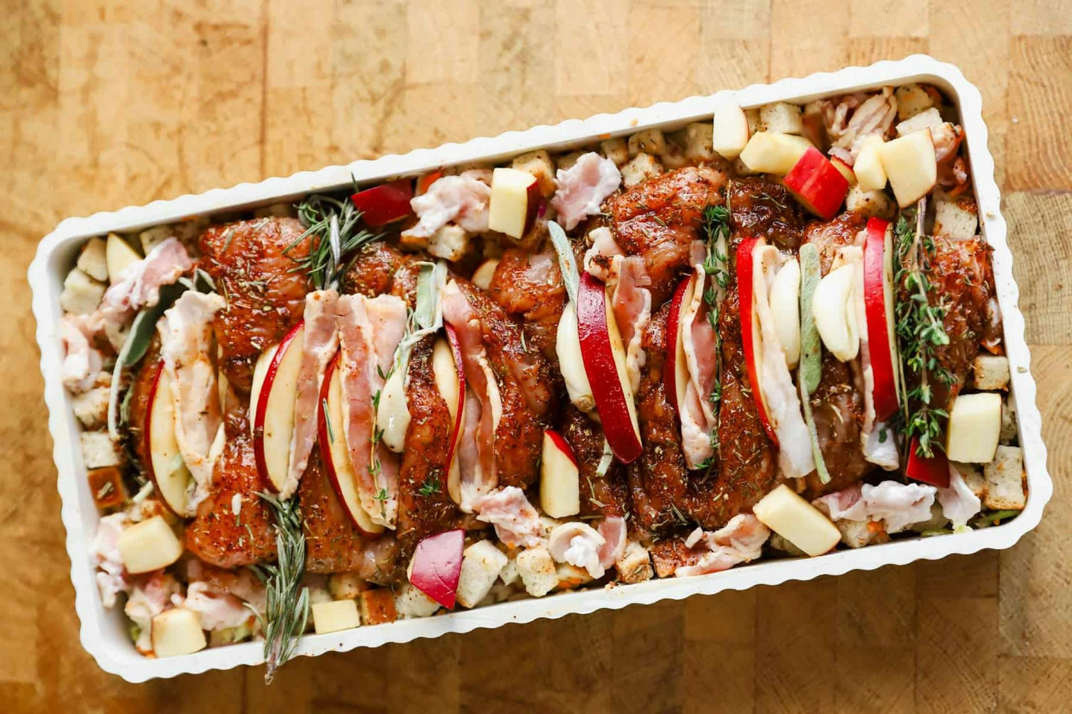 This can be prepared up to a day in advance and refrigerated until ready to bake. From Lee Funke’s Sheet Pan Thanksgiving Dinner recipe on Fit Foodie Finds.