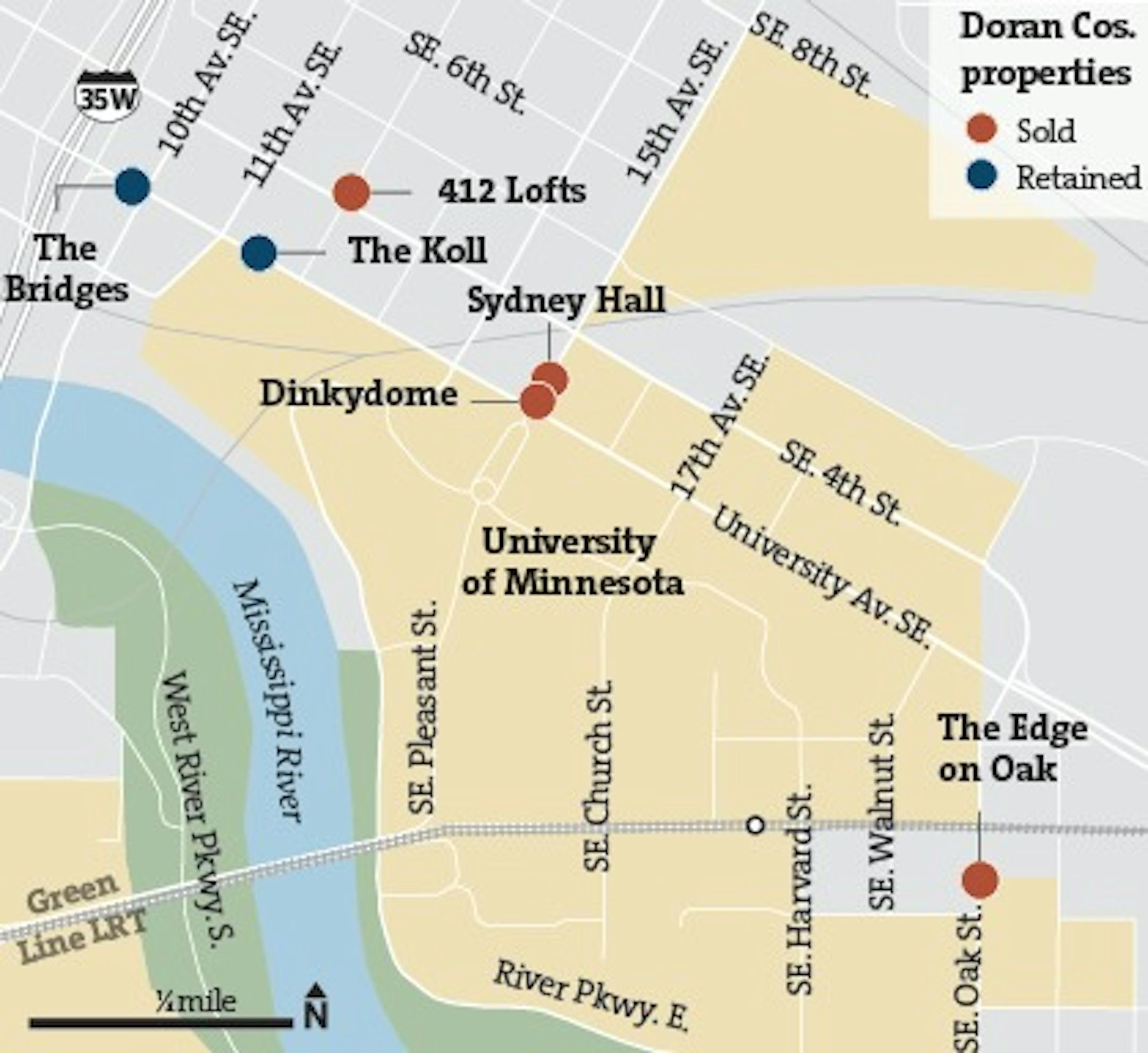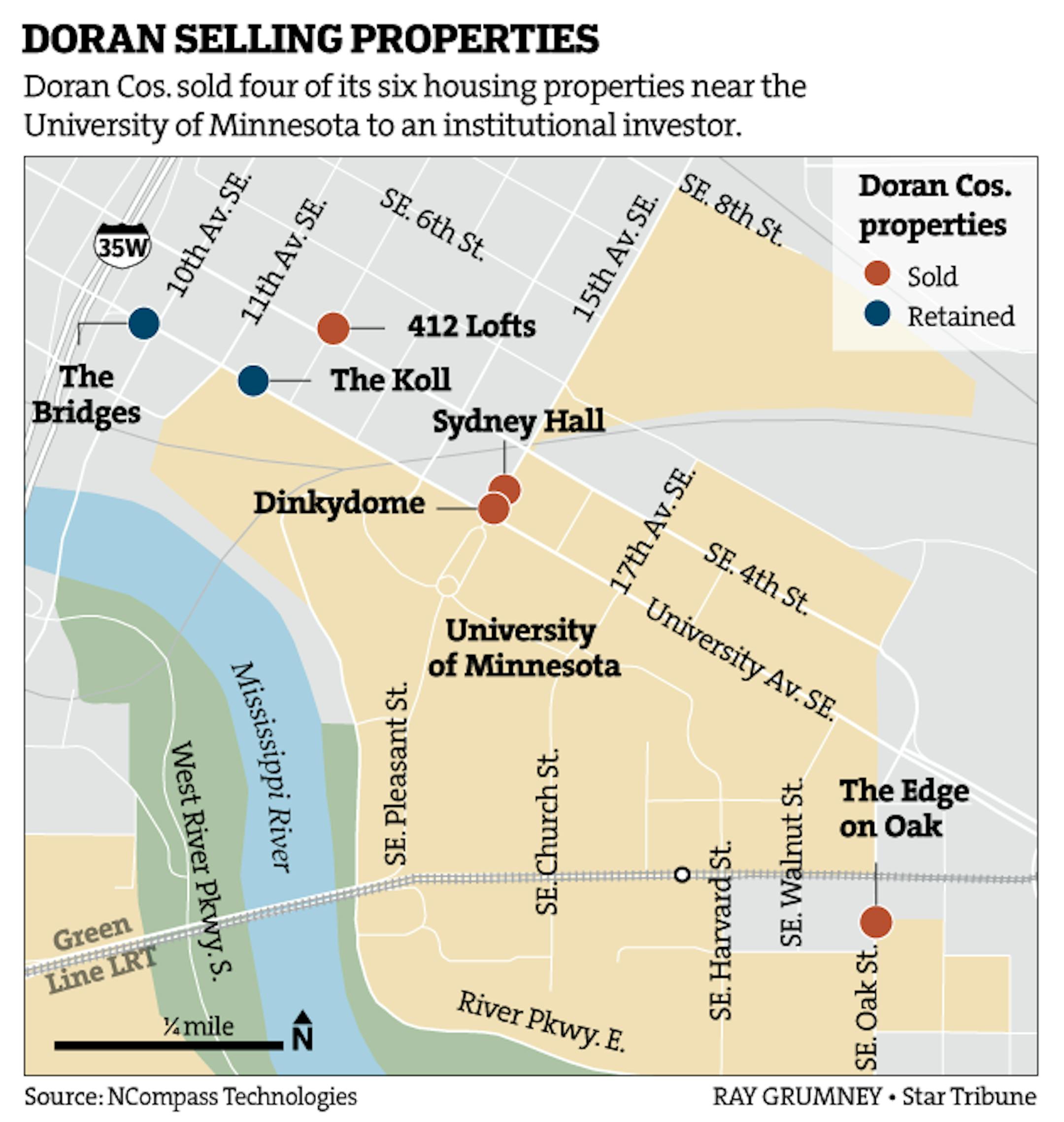 Doran Cos. sold four of its six housing properties near the University of Minnesota to an institutional investor.