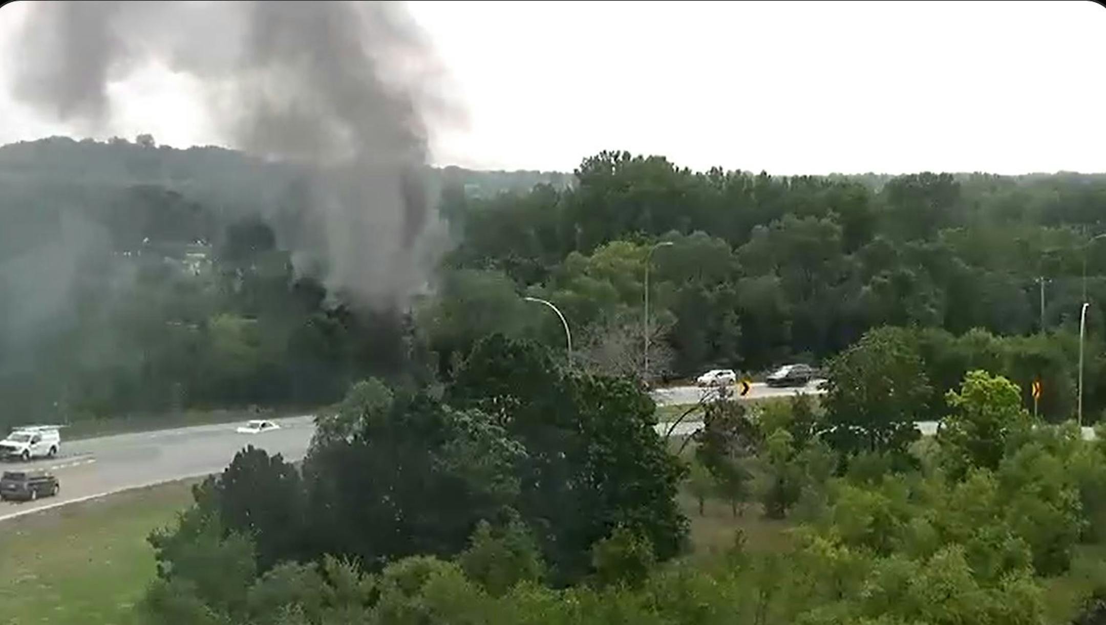 The truck left the road about 12:45 p.m. and crashed into some trees and caught on fire, Linders said.