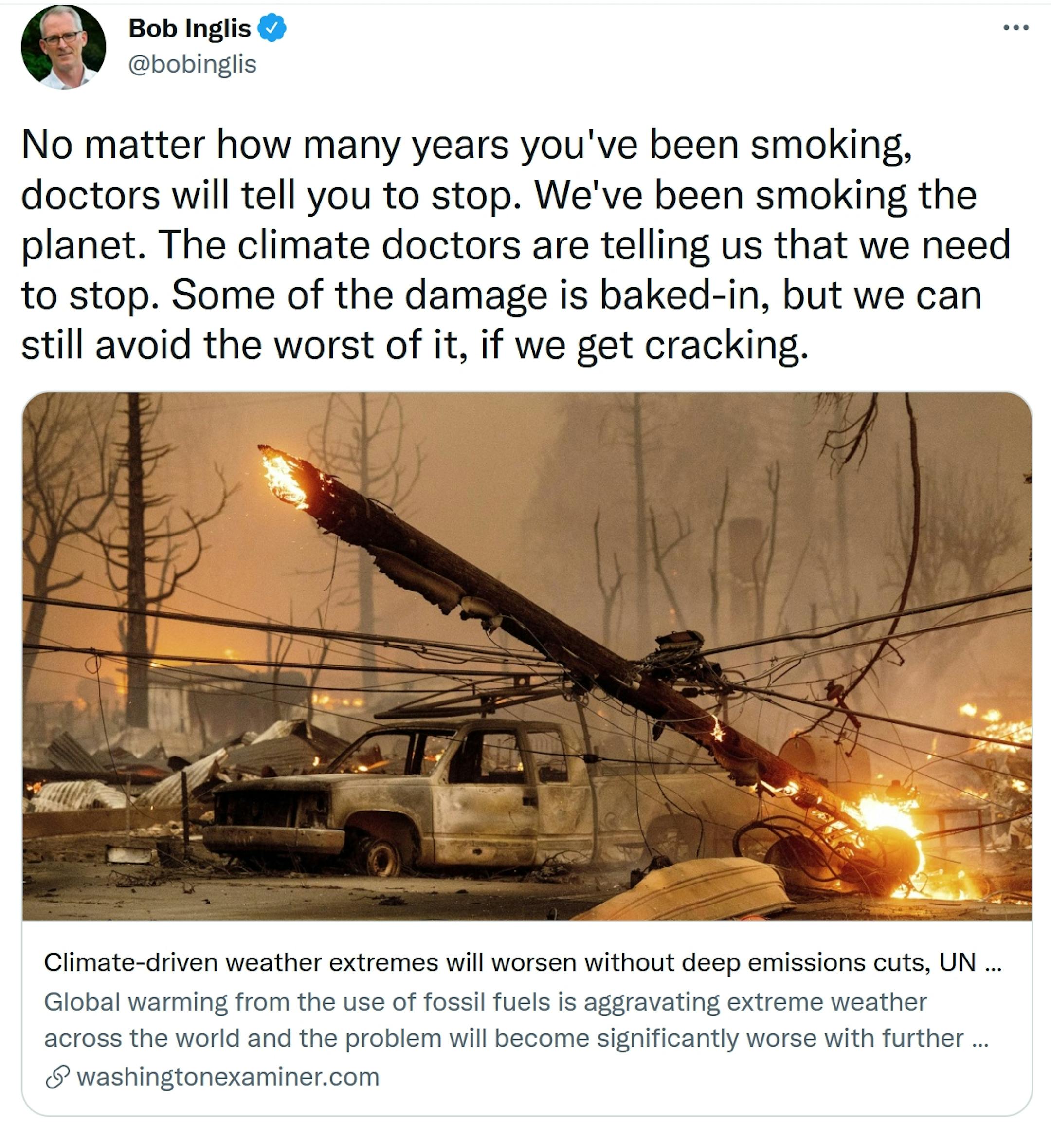 Climate-Driven Weather Extremes Will Worsen Without Deep Emissions Cuts, UN Warns. Here's an excerpt from The Washington Examiner: "...But Hausfather said he is more optimistic that the less-stringent 2 degrees target can be met, which the U.N. report shows would require getting emissions to zero in the 2070s. While a half-degree may not sound like much, the report details that even that much warming could have a big impact on the natural world, leading to a loss of all coral reefs and risking the extinction of species that cannot adapt to warmer temperatures. Every additional half-degree of warming causes "clearly discernible" increases in the intensity and frequency of heat waves, heavy precipitation, and droughts, the report said. The report is noteworthy for using stronger language to declare that human activity is causing climate change and attributing extreme weather events to global warming..."