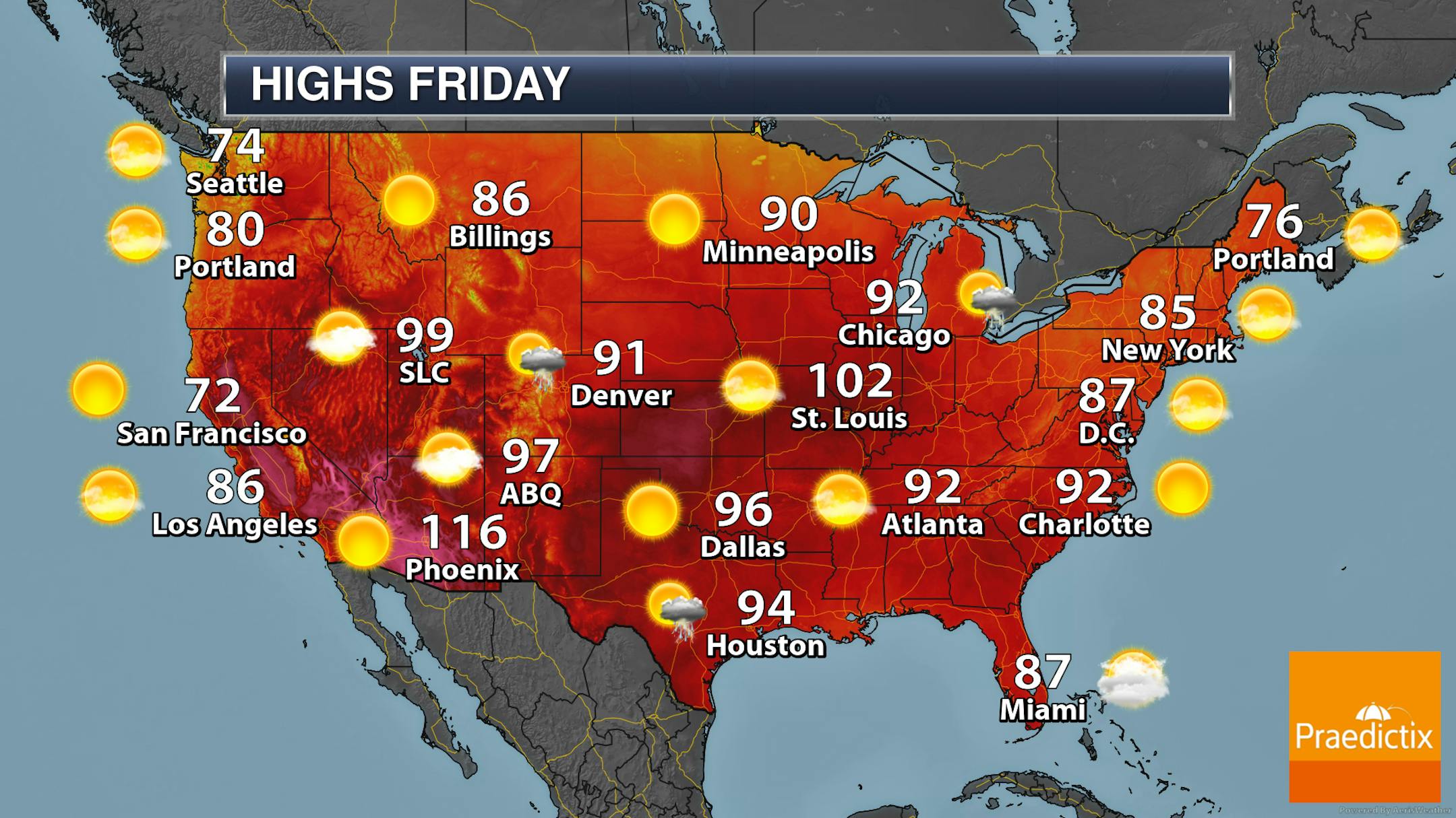 We've made it to Friday, and it's going to be the last chance at a 90F degree high for at least a little bit of time. It looks like we'll climb up to around 90F out ahead of some cooler air moving in for the weekend with mainly sunny skies.