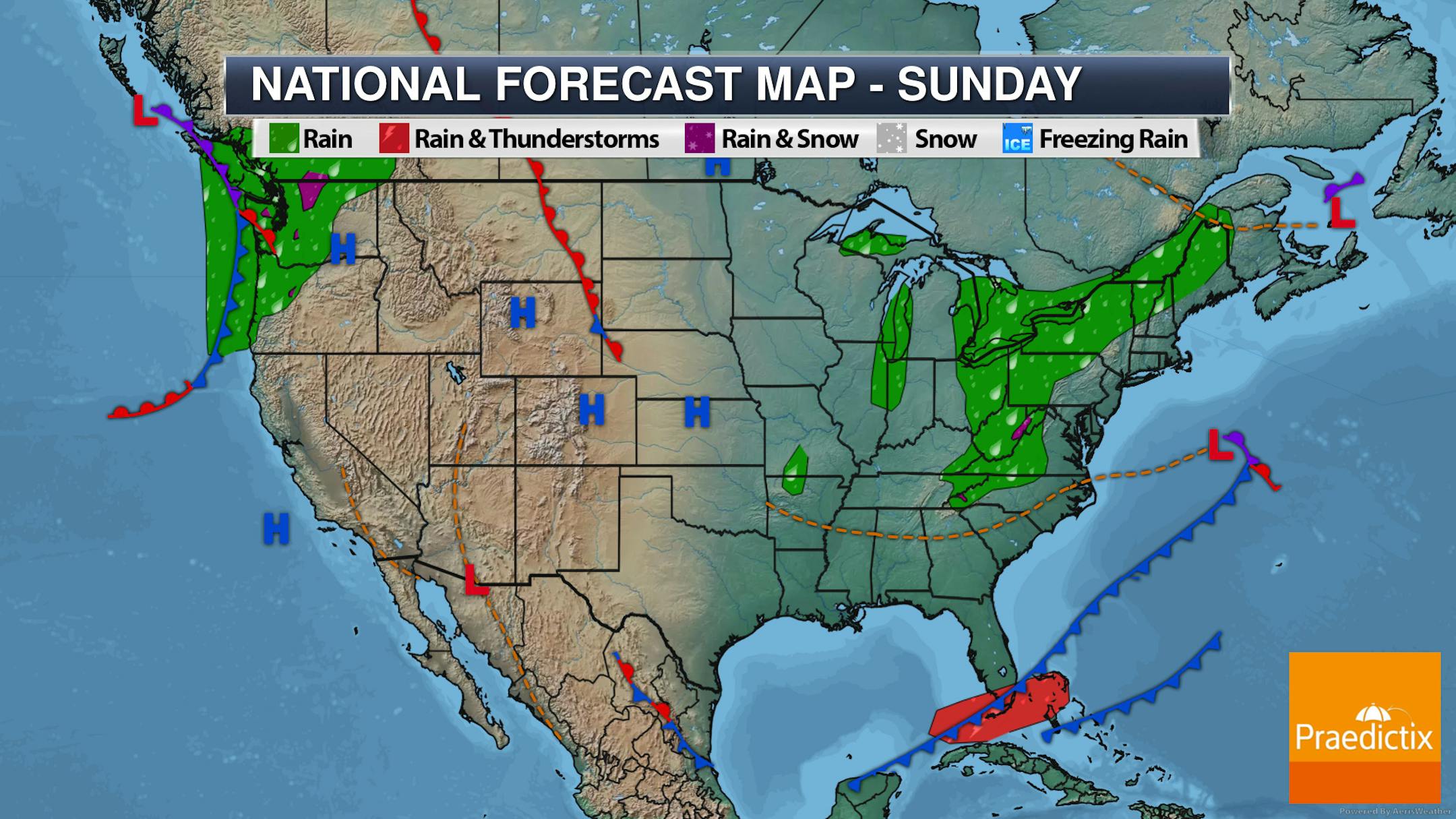 Good news: no rain in the forecast for Sunday! We should see slowly clearing skies as we head throughout the day, with more sunshine in the afternoon vs. the morning. Morning temperatures start off in the mid-40s with highs in the mid-50s.