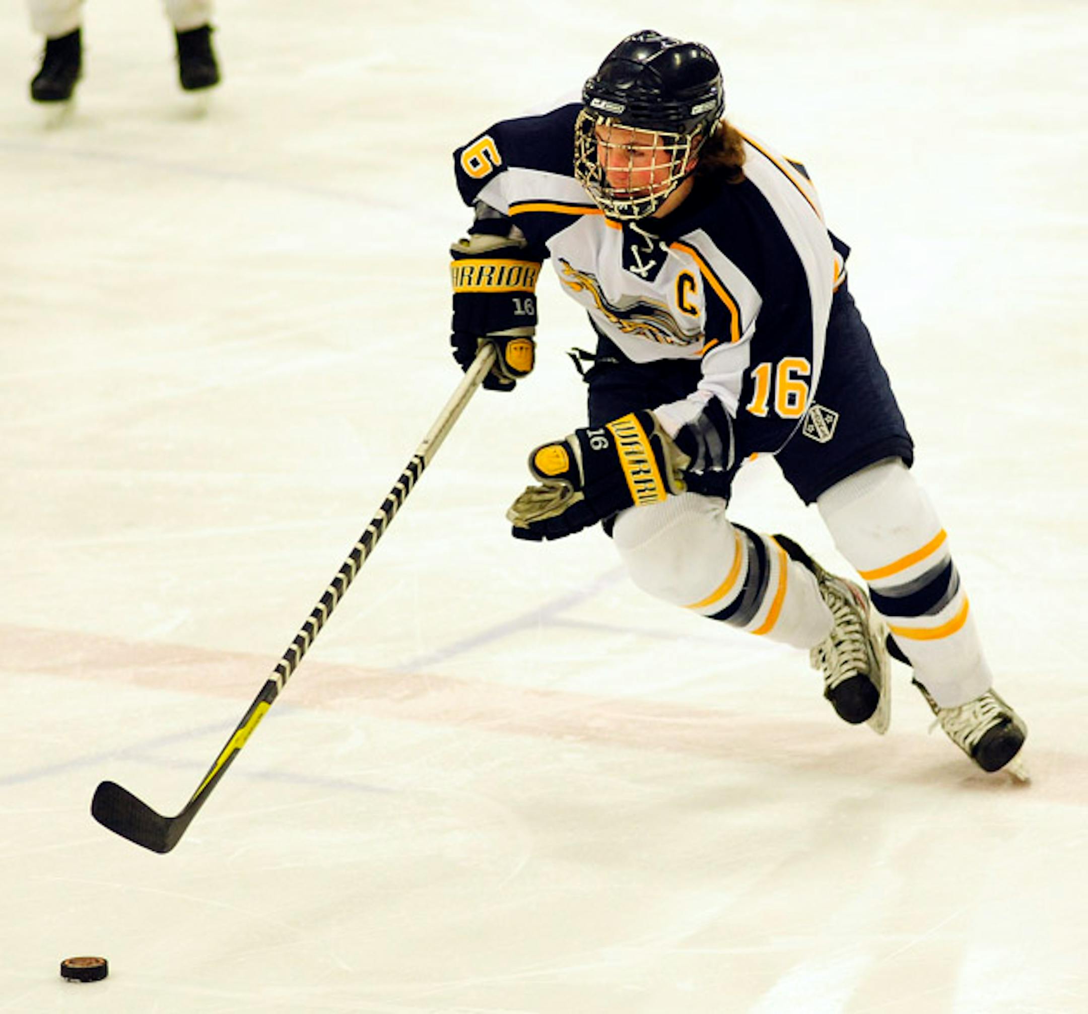 Photo: Hermantown defenseman Jared Kolquist skated with the puck through the neutral zone in a 4-0 Section 5A championship game victory over Rogers on Friday night in Duluth. Howie Hanson / For StarTribune.com