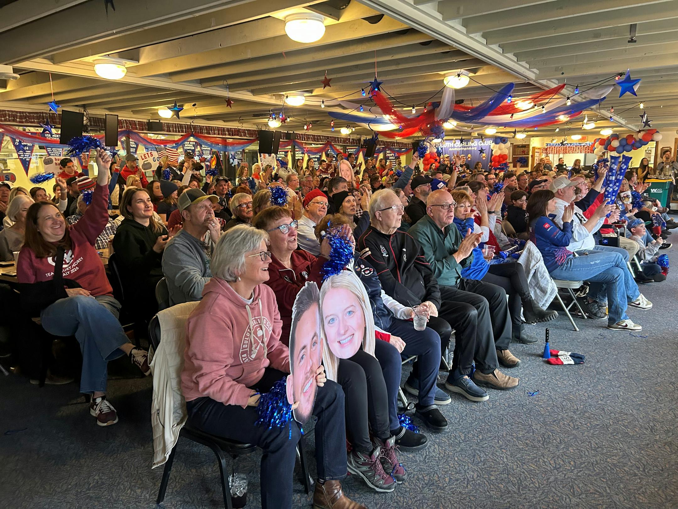 The club hosted watch parties at the Duluth Entertainment Convention Center throughout round-robin play and into the final. By Tuesday morning, the Gold Medal Lounge was at capacity, close to 190 people, for members-only viewing. Aficionados packed into rows of chairs, around tables, at the bar and against the window looking over eight curling sheets.