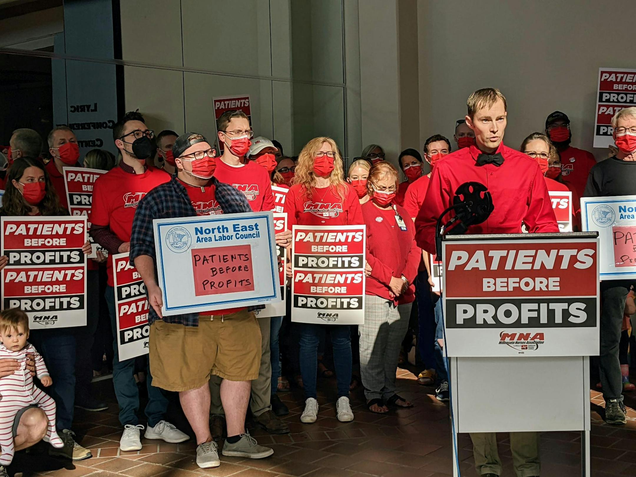 Contracts for about 2,500 nurses for St. Luke's and Essentia expire June 30. They seek "fair compensation for sacrifices made during the pandemic and for the rising cost of living," said Chris Rubesch, an MNA leader and Essentia nurse.