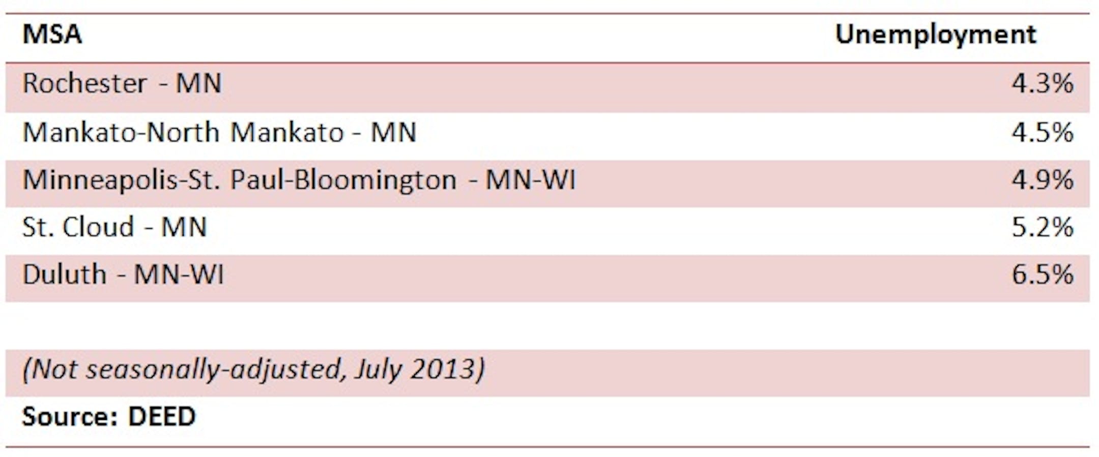 6.5 percent unemployment is still better than the national average, but look how Duluth-Superior compares to the other metro areas in Minnesota: