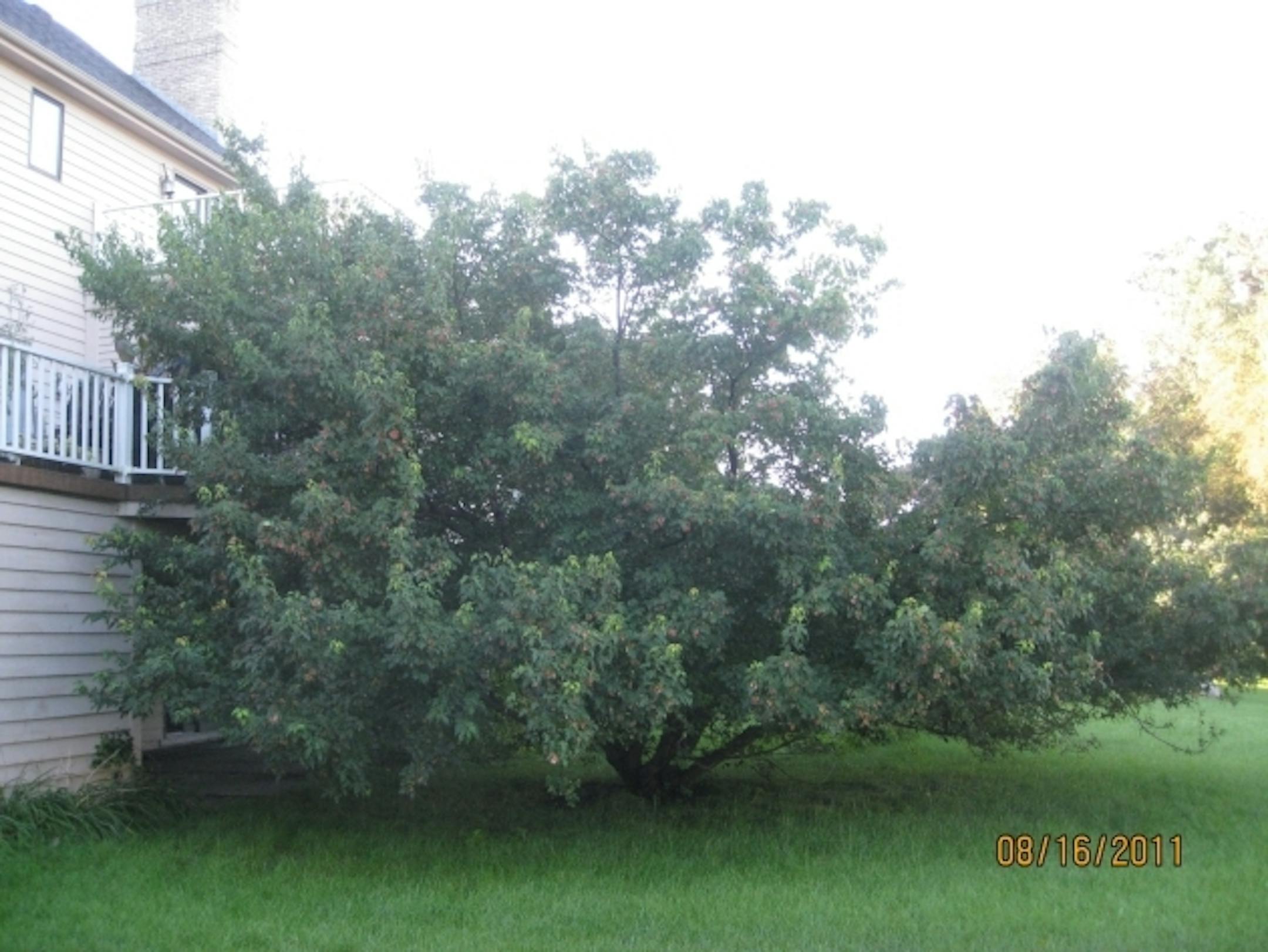 We had wanted a maple, for fall color, so we went to the garden center and bought a healthy-looking little sapling. I didn't read the tag too carefully. It was definitely a maple, and there was a picture of a red leaf, so that was good enough.