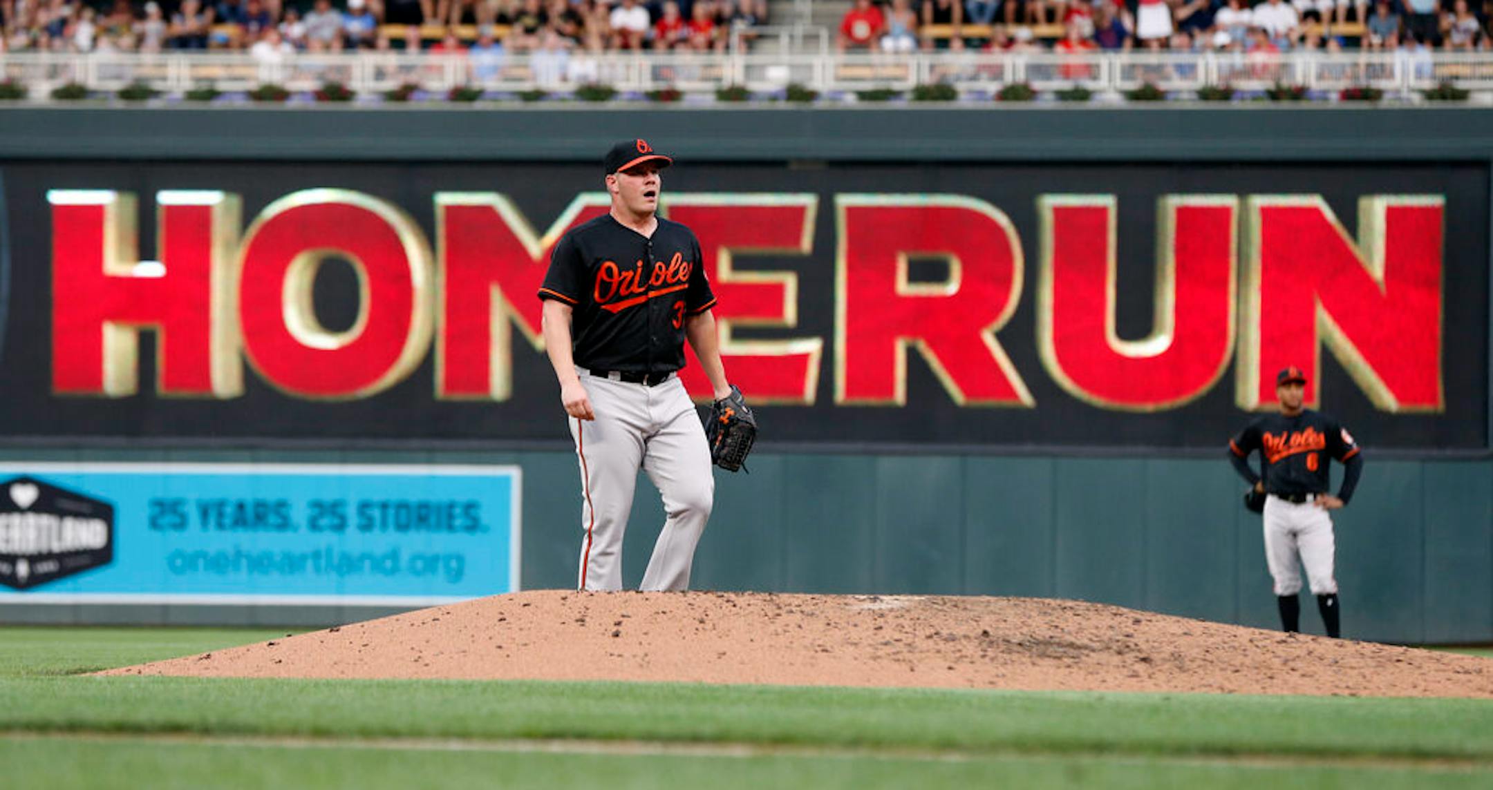 Dylan Bundy after giving up a home run at Target Field to Max Kepler in 2018. (Associated Press/The Minnesota Star Tribune)