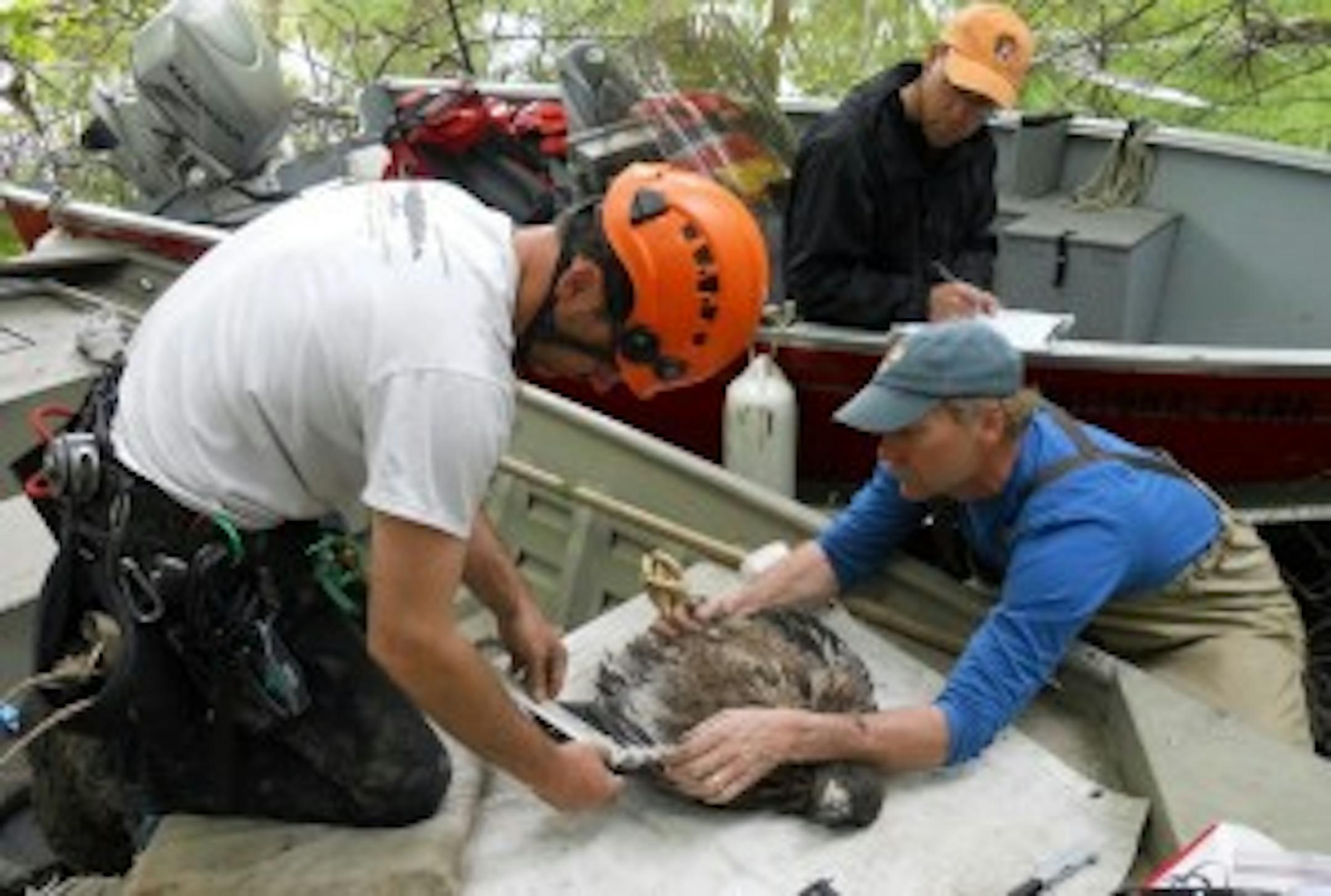 Route, of the National Park Service has been conducting research into contaminants in our environment since 2006, and uses blood samples from young eagles on the Mississippi and St. Croix Rivers and the Apostles Islands to measure levels of chemicals.
