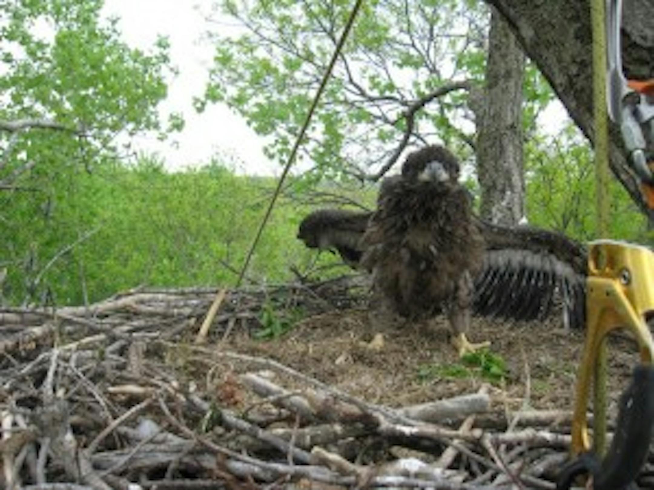 A bald eagle chick was briefly kidnapped from a nest on the Mississippi River recently.