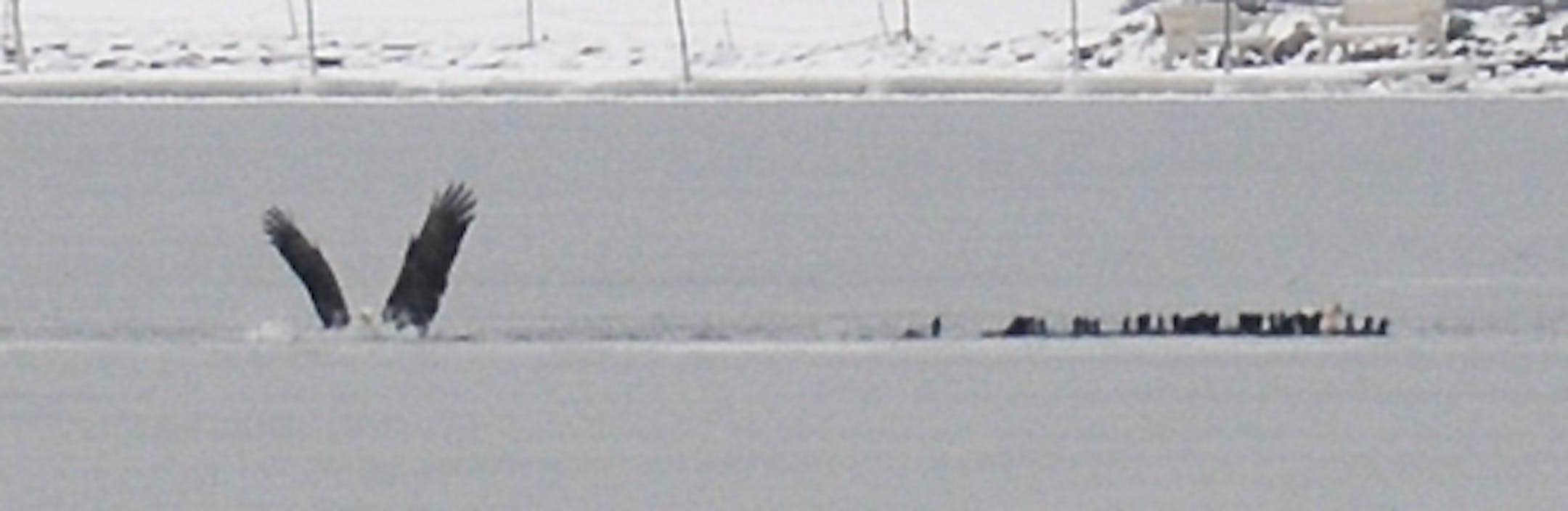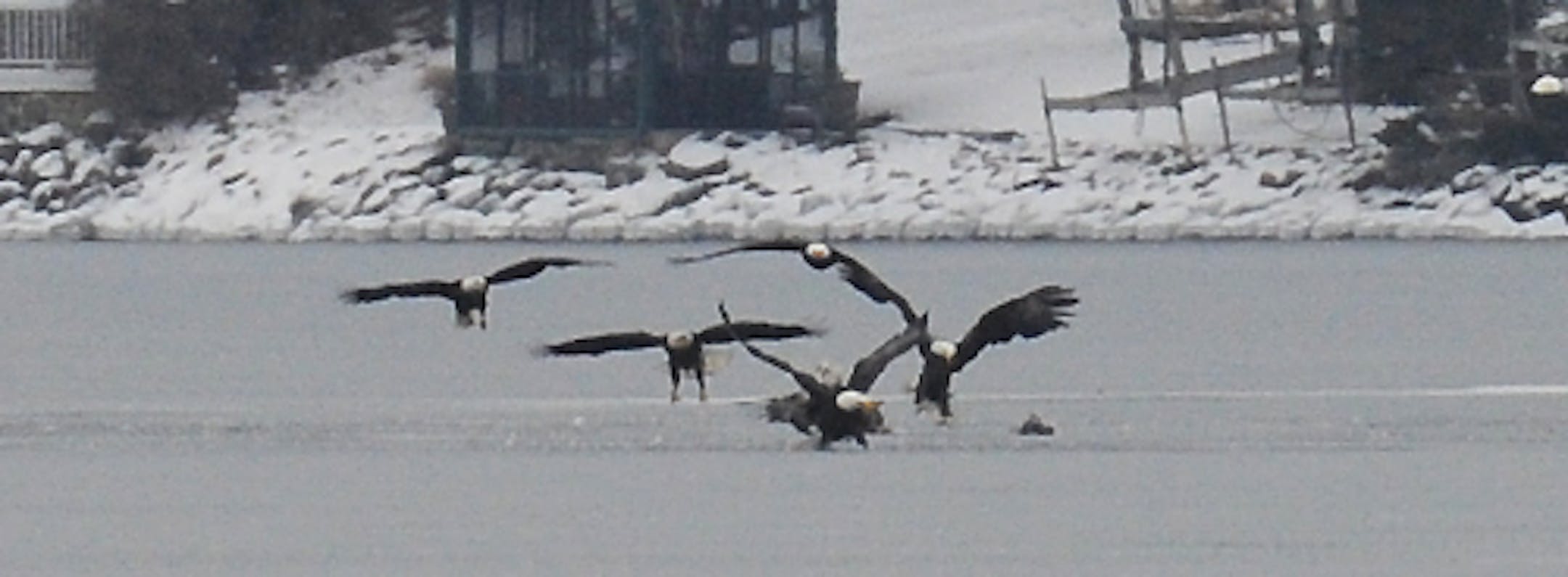 About three dozen American Coots found themselves trapped today in a small patch of open water on Wayzata Bay, Lake Minnetonka. They drew the interest of Bald Eagles hunting waterfowl on the lake. As many as 32 eagles were on the scene at mid-afternoon. The eagles would dive on the coots, sending them skidding to one end of the pool. Eagles would drop into the water, sinking shoulder deep as they grabbed for the frantic birds. Coot in hand, the eagles flew off for a solitary lunch, solitary unless other eagles wanted a share. Coots need a long stretch of open water across which to run to gain sufficient speed for liftoff. This piece of water is too small. This was Monday afternoon. If the coots are able to keep the water open into Tuesday the eagles should be back at the lunch counter. Best viewing is from the Wayzata city beach west of the depot.