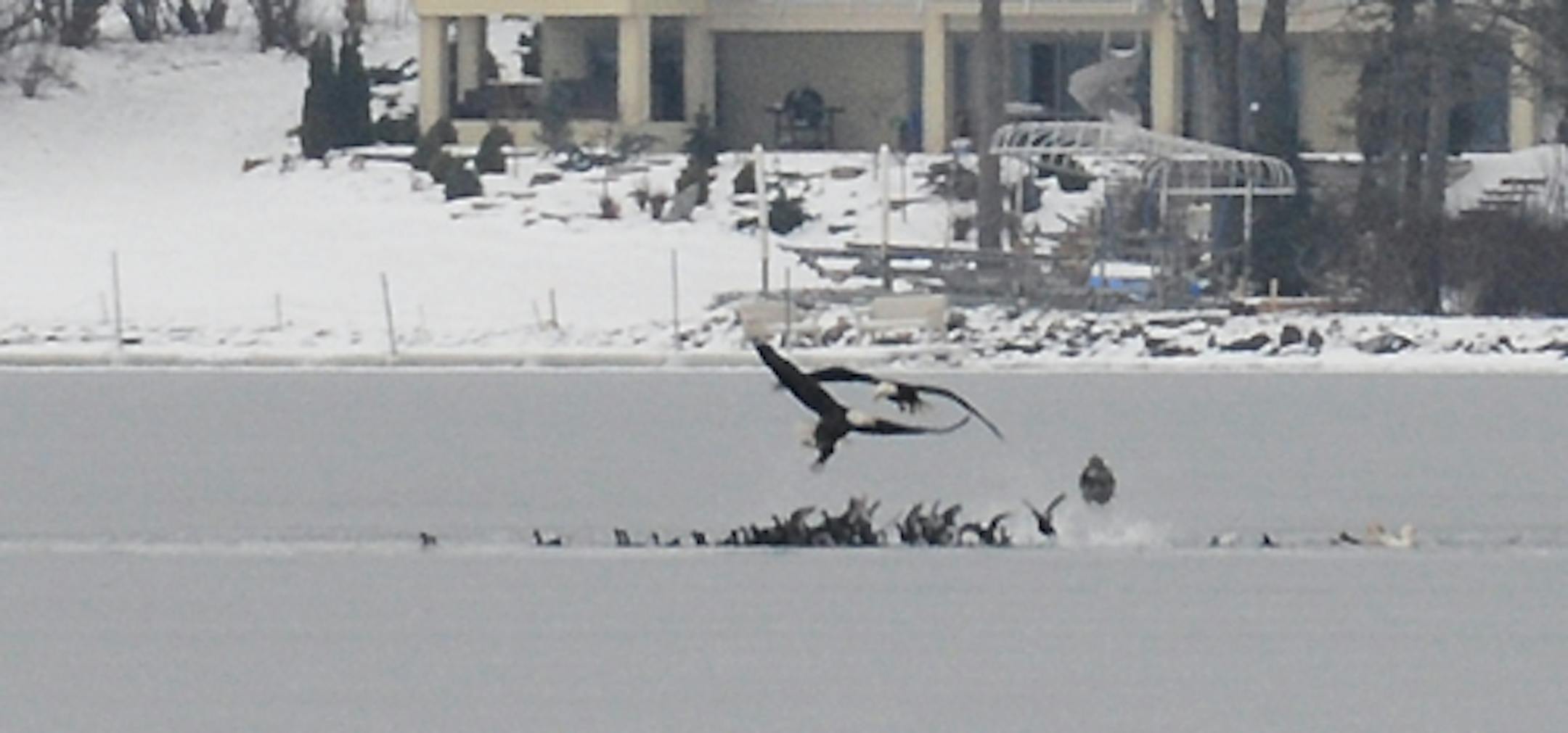 Eagles successfully hunting coots on Wayzata Bay