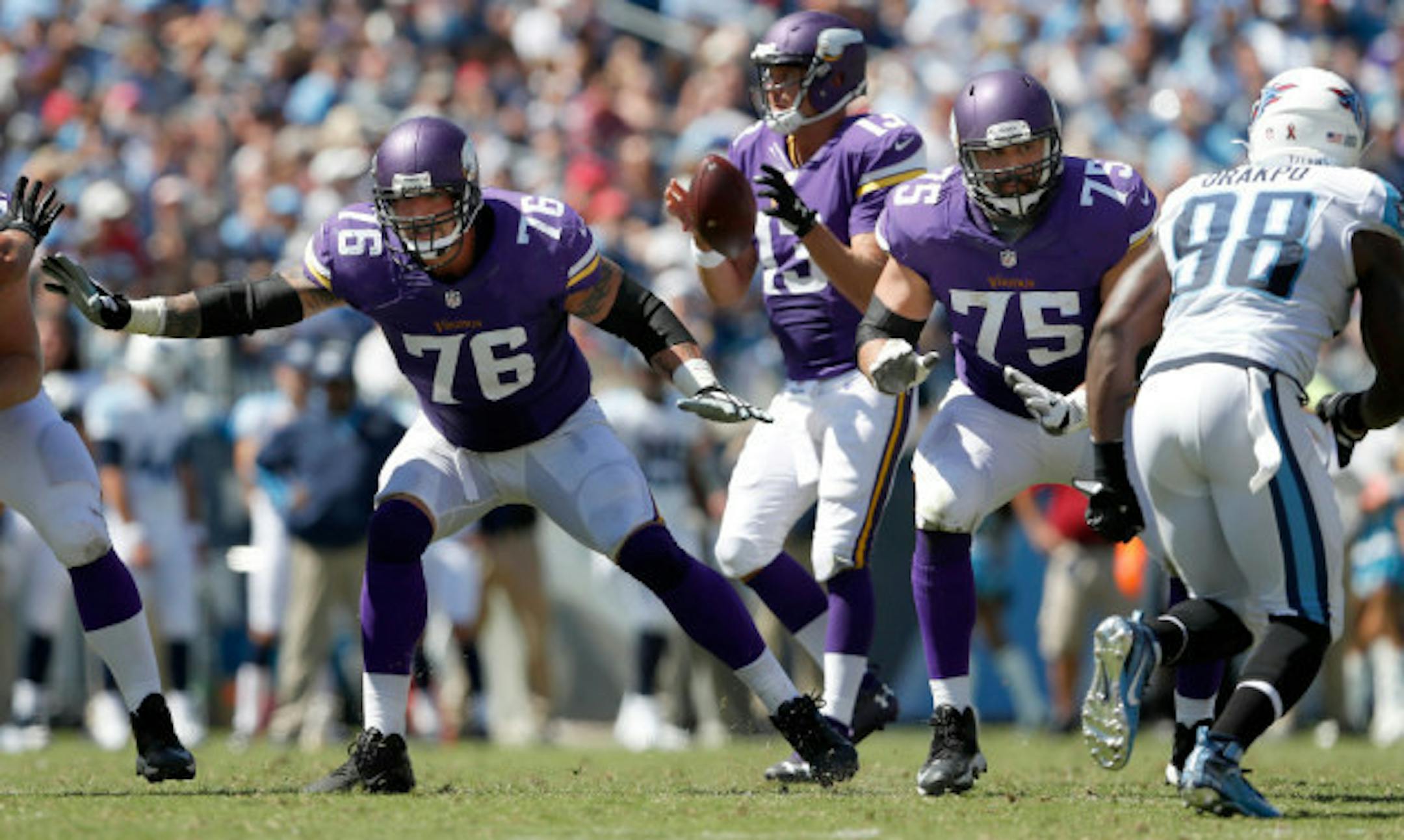 The Vikings have drafted only two offensive linemen — tackles Matt Kalil and Phil Loadholt — in the first three rounds since 2007.