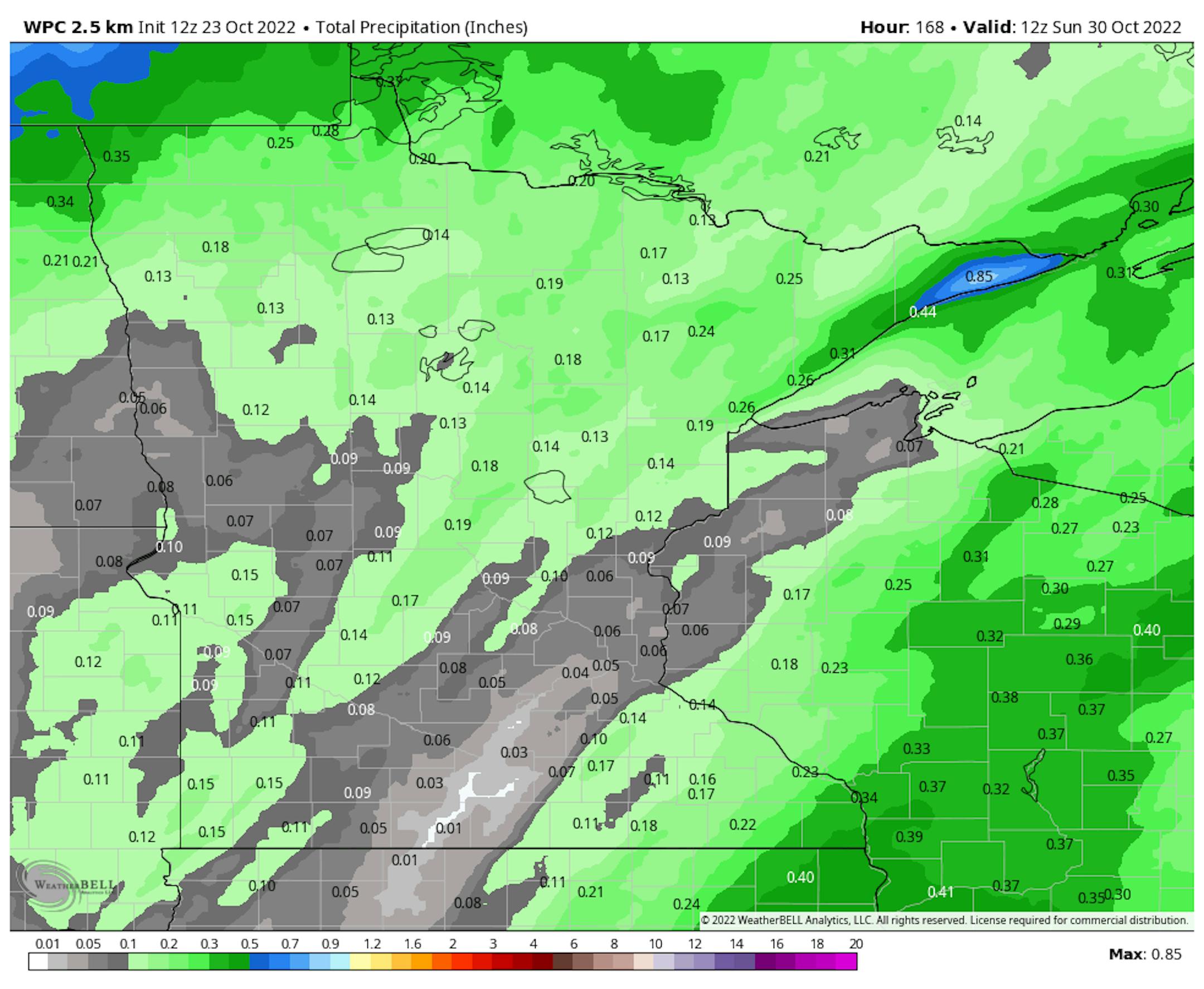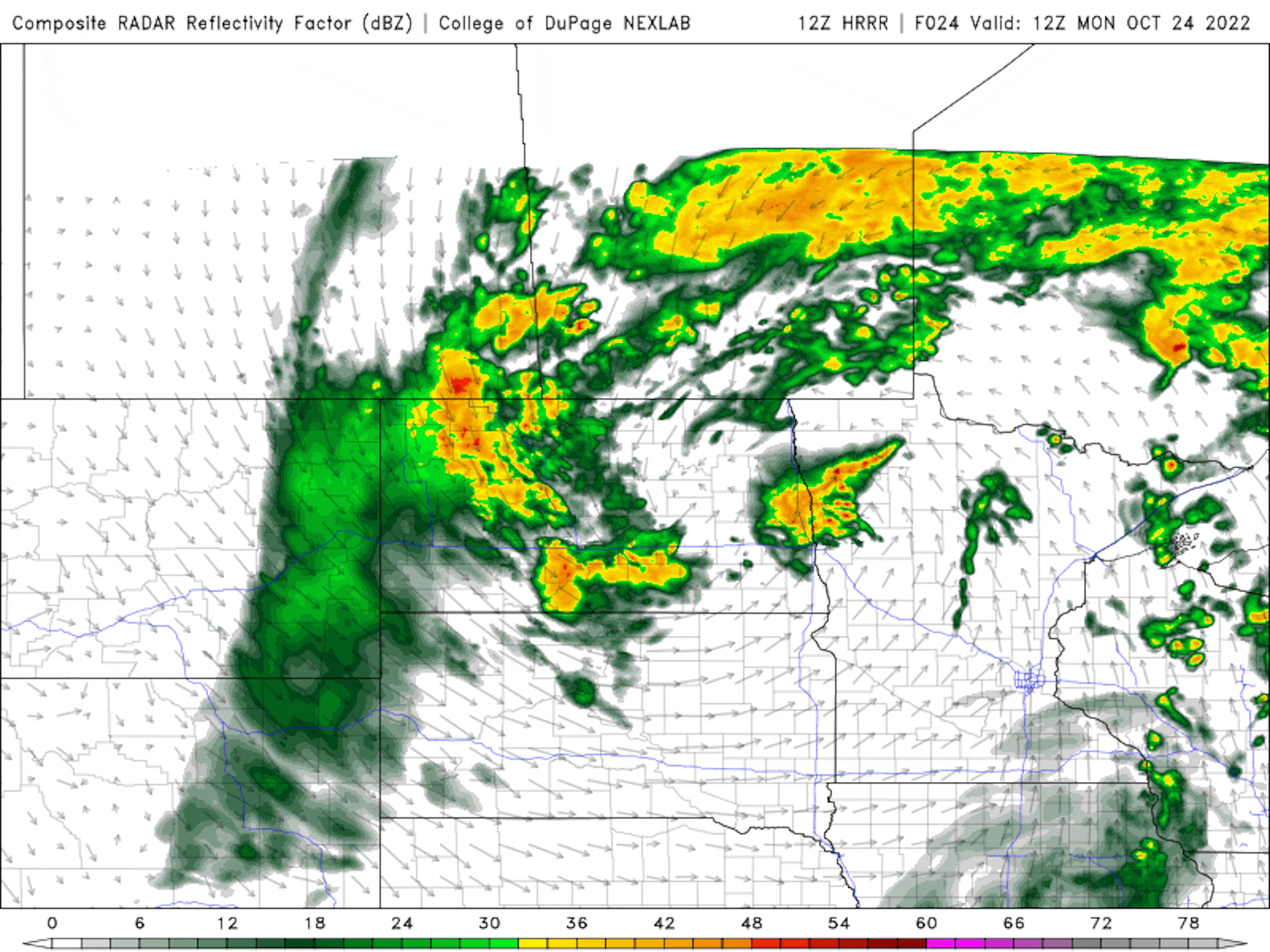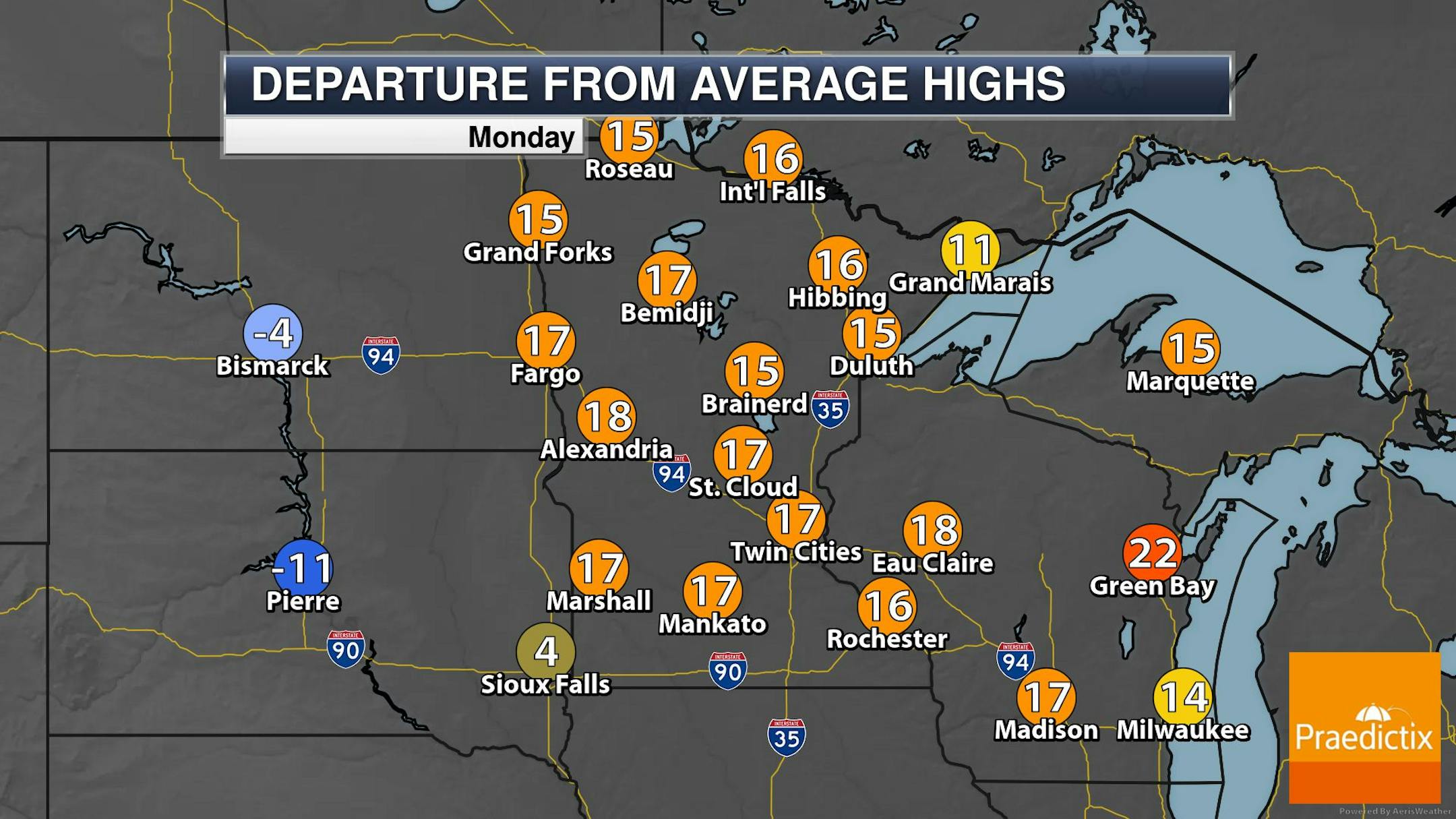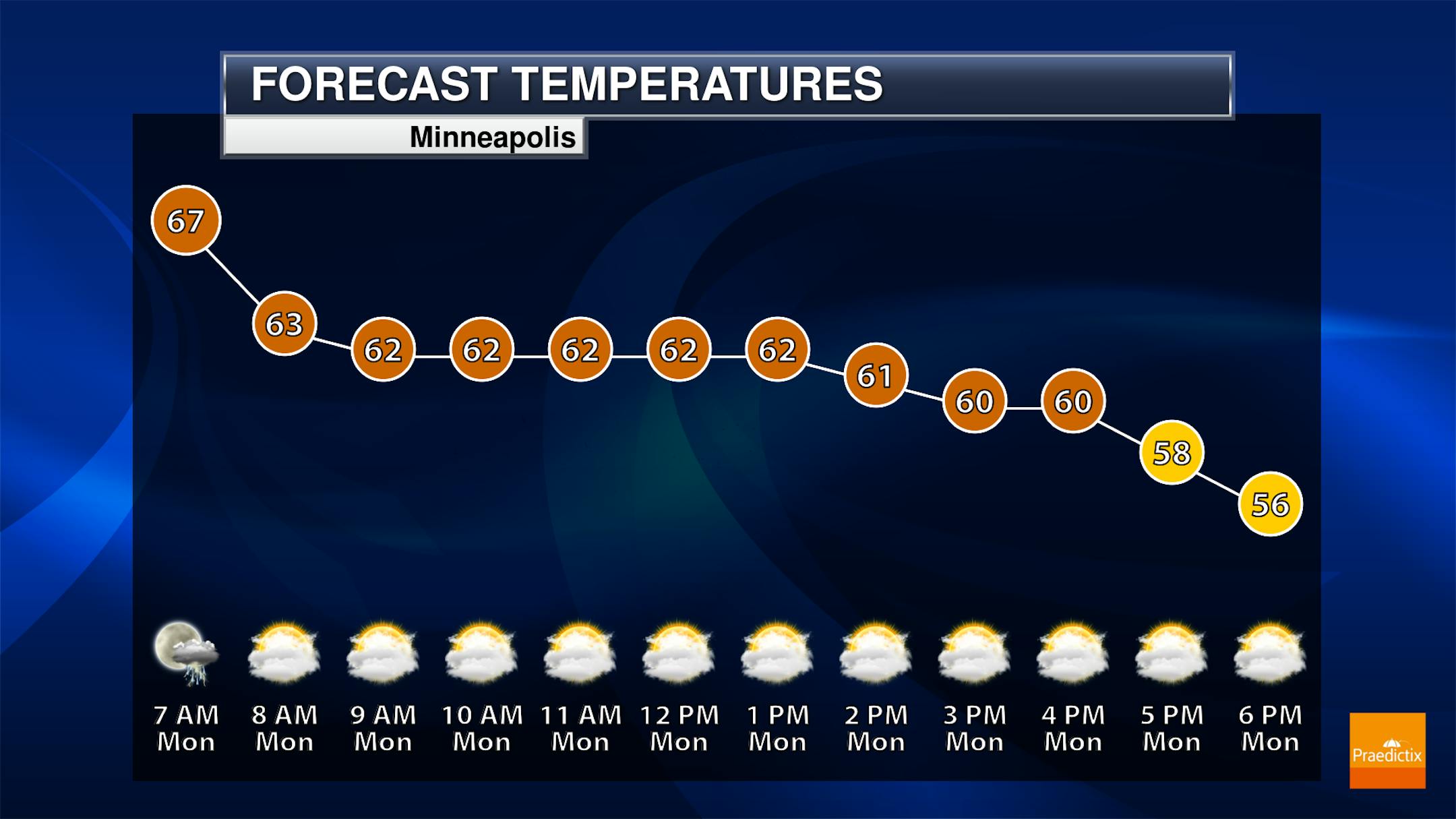 Here's the weather outlook through Monday, which shows isolated showers and storms across the Upper Midwest through the day.
