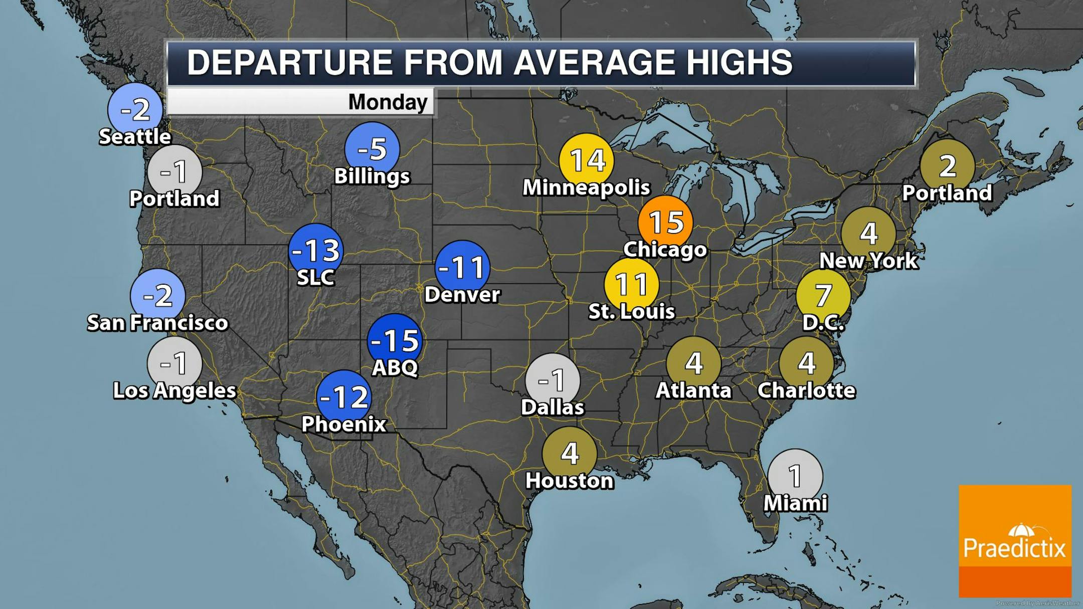 If you look at the precipitation deficit for the season (since September 1st) the deficit is even greater. Many locations are well below average.