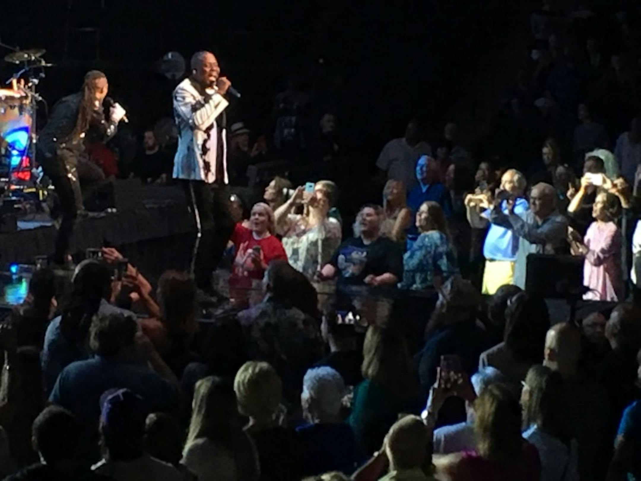 At least, EWF emphasizes the point of original members Philip Bailey, Verdine White and Ralph Johnson by setting them off in similarly styled outfits, having them stand together on a runway oftentimes and introducing them as EWF's elements. But the group also showed several photos and videos saluting its late leader Maurice White, who stopped performing in the mid-'90s because of Parkinson's disease and died in February 2016.