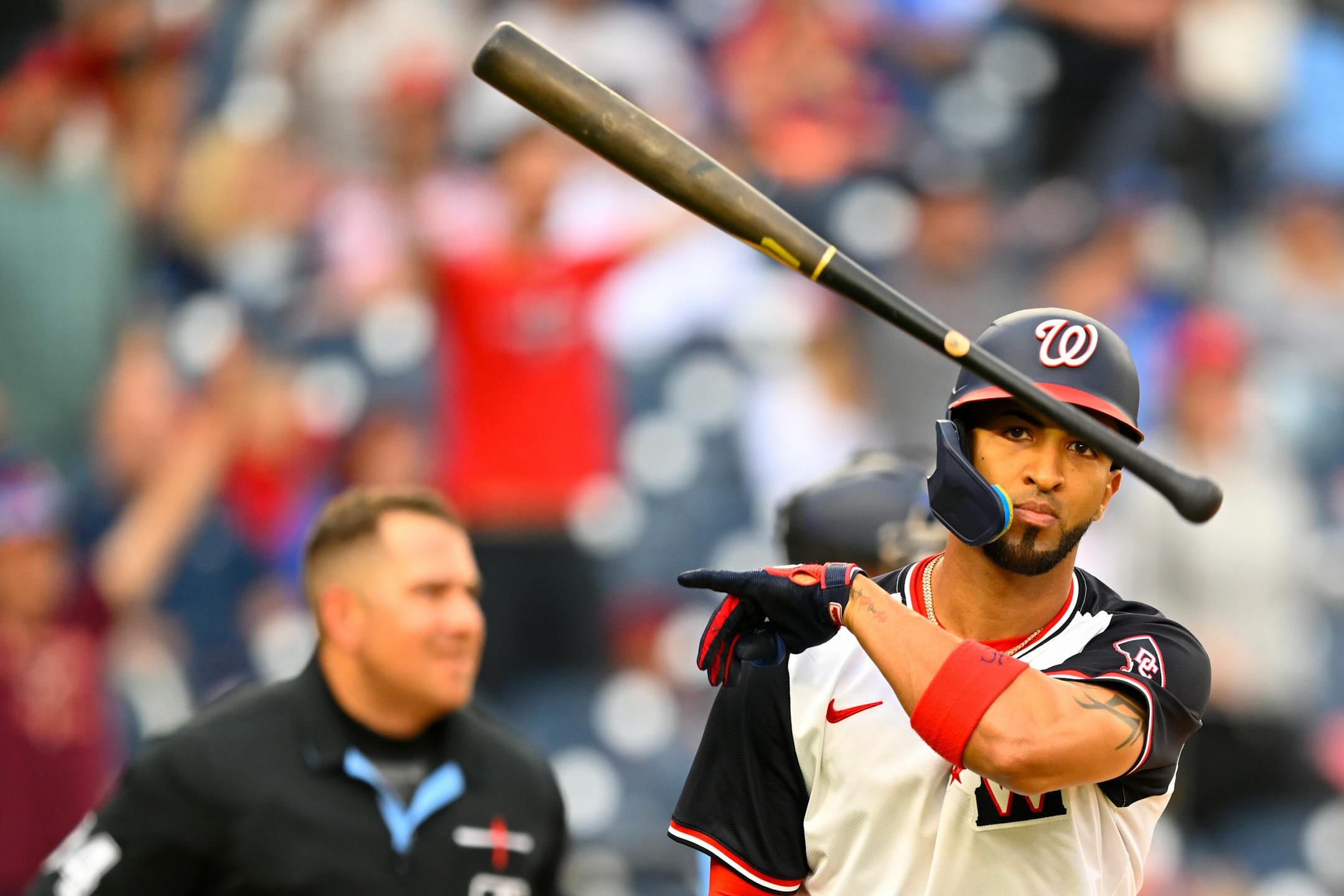 Hunter Harvey (2-1) pitched 1⅓ innings for the win and Kyle Finnegan worked the ninth for his 11th save. Washington relievers allowed two runs — one earned — over six innings.