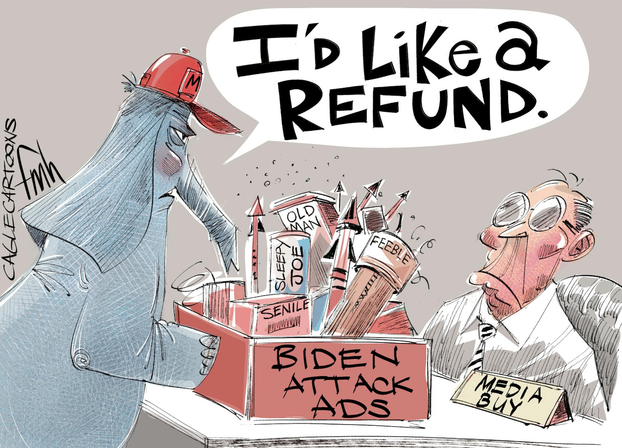 Editorial cartoon: Frank Hansen on the ‘Biden dropped out’ refund