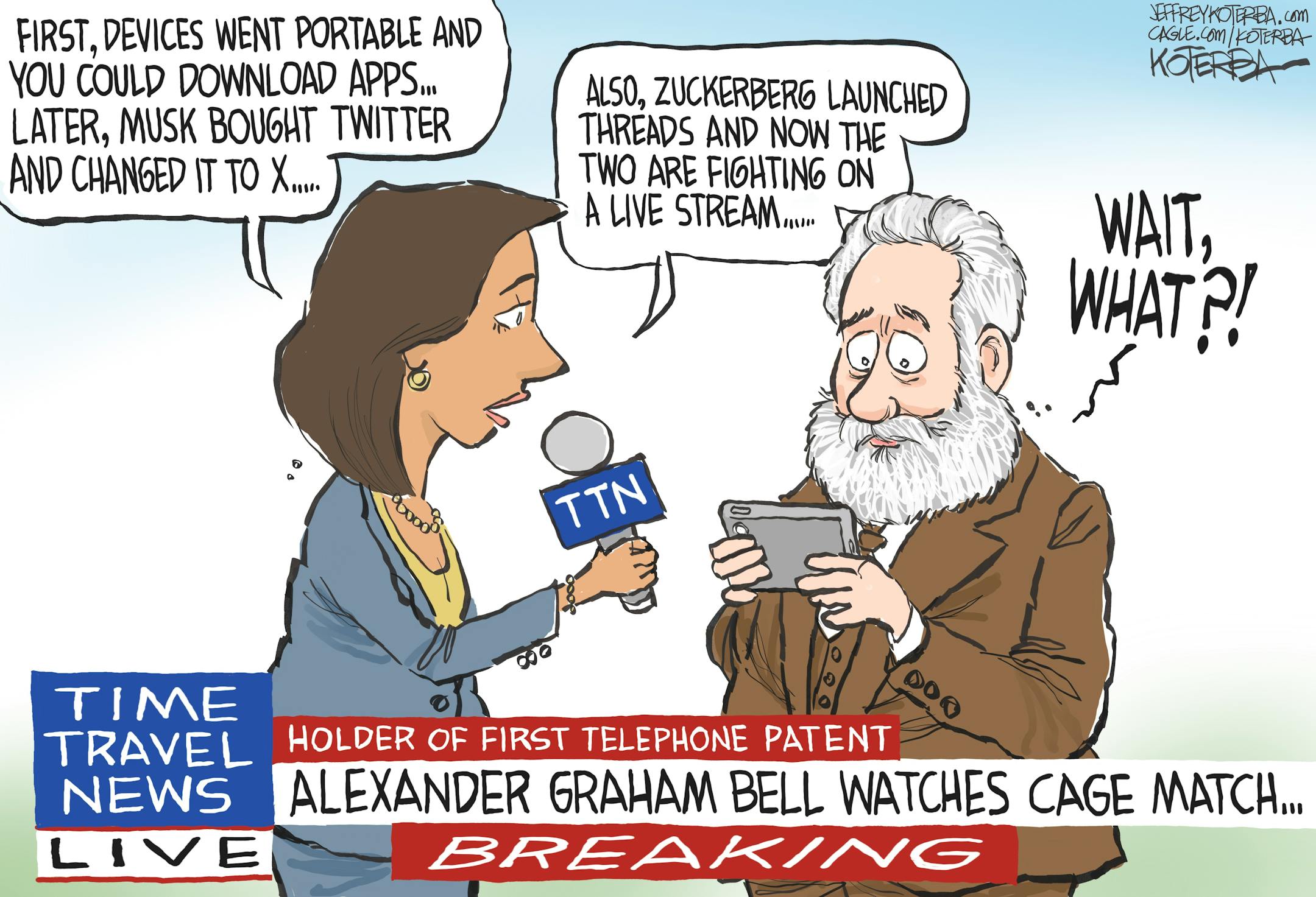 Editorial cartoon: Jeff Koterba on telecommunications progress