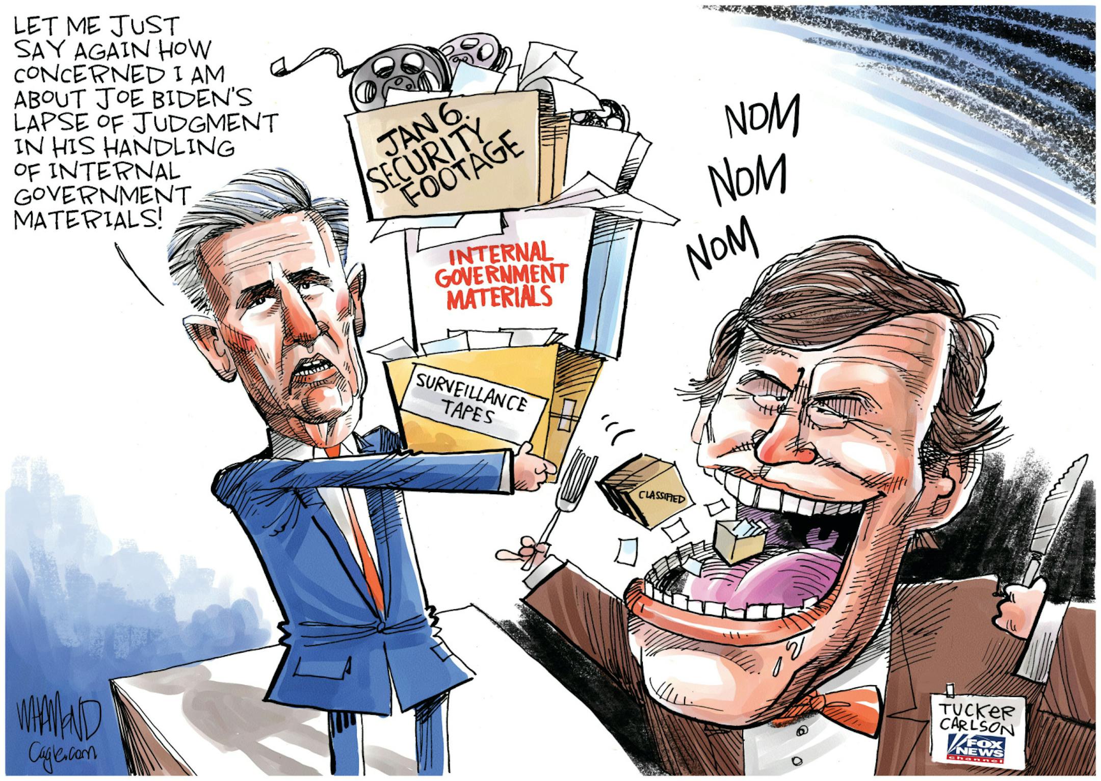 Editorial cartoon: McCarthy hands over Jan. 6 security footage