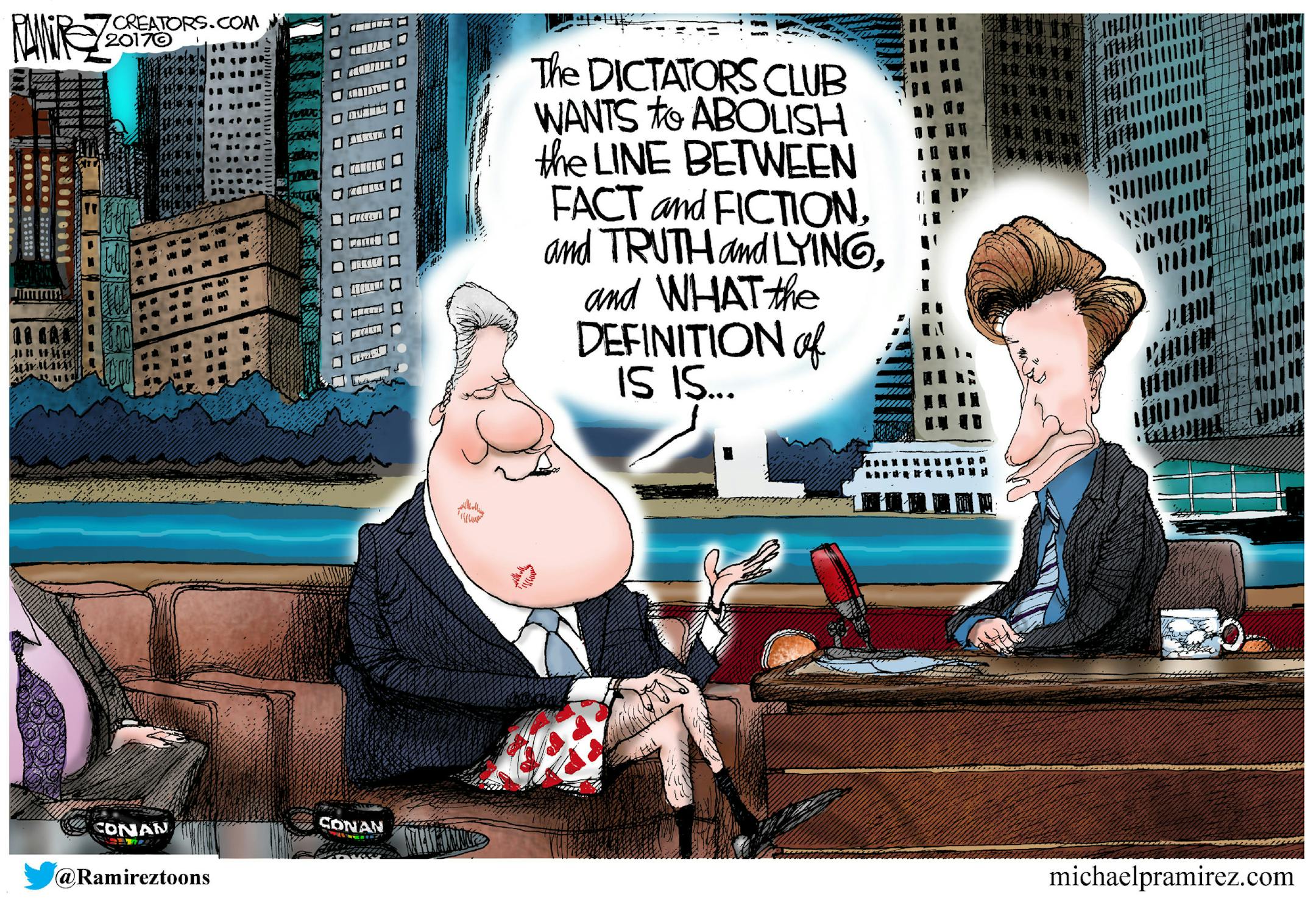 Editorial cartoon: Michael Ramirez on Bill Clinton on fake news