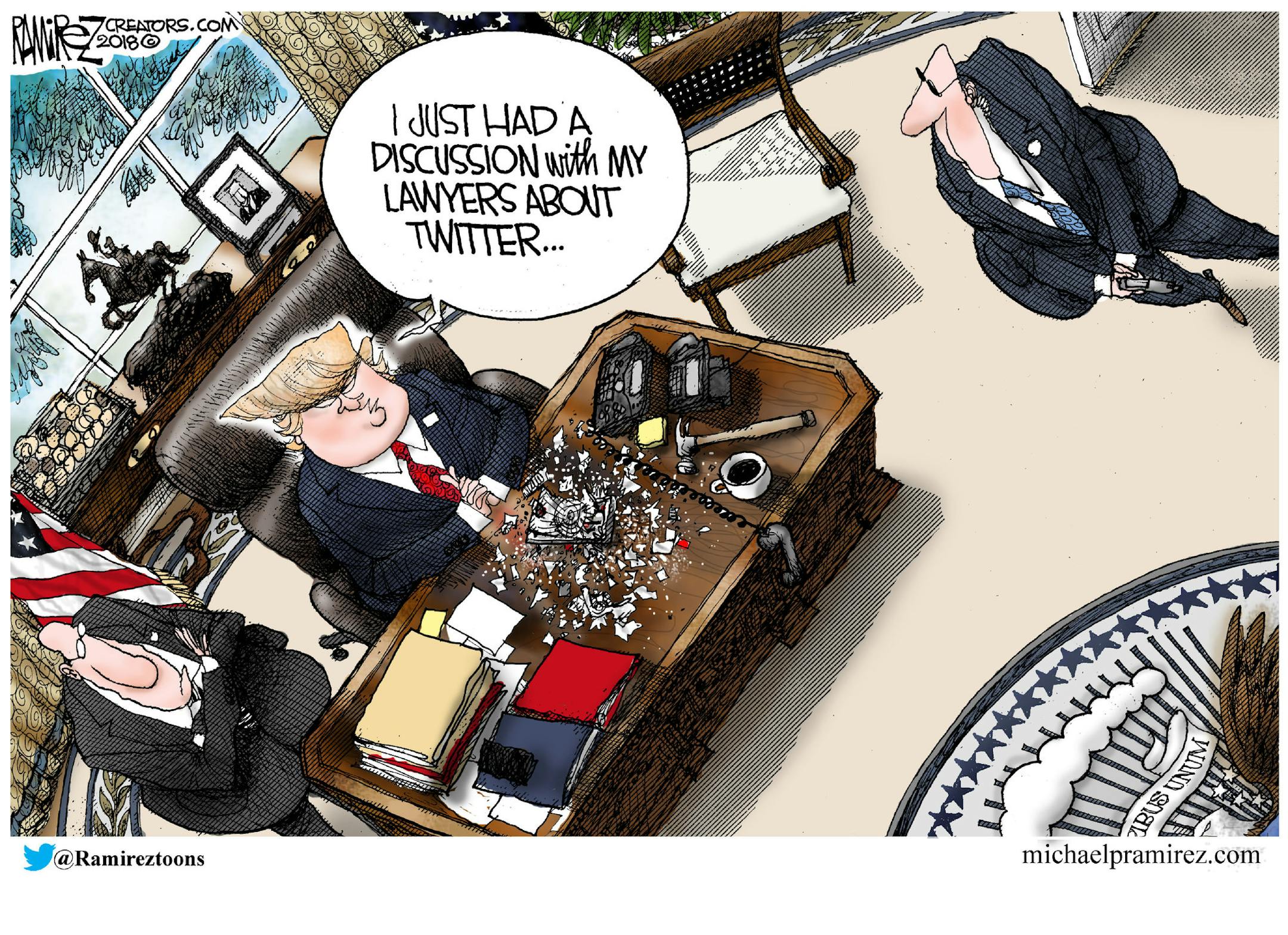 Editorial cartoon: Michael Ramirez on Trump and Twitter