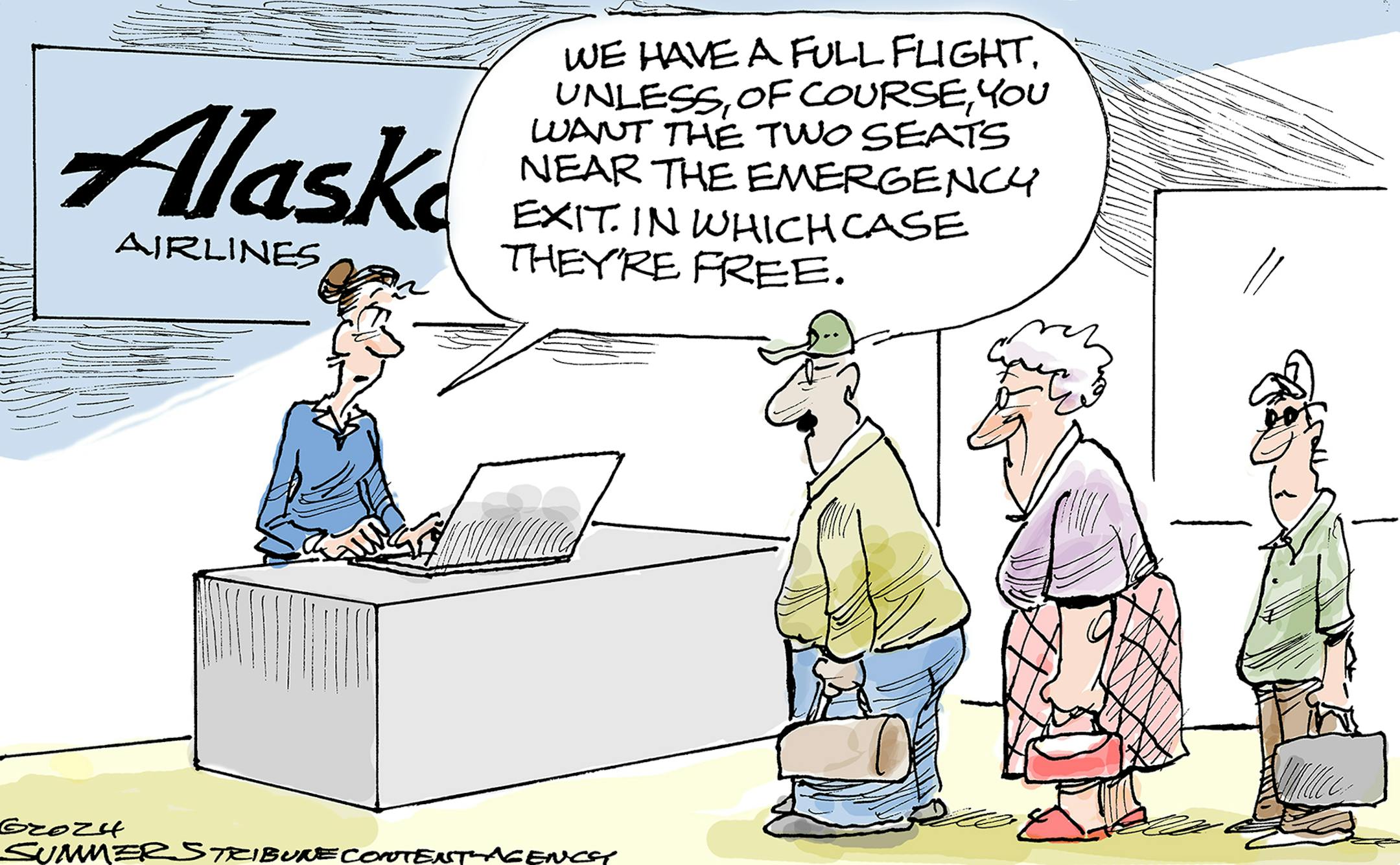 Editorial cartoon: Open seats on Alaska Airlines