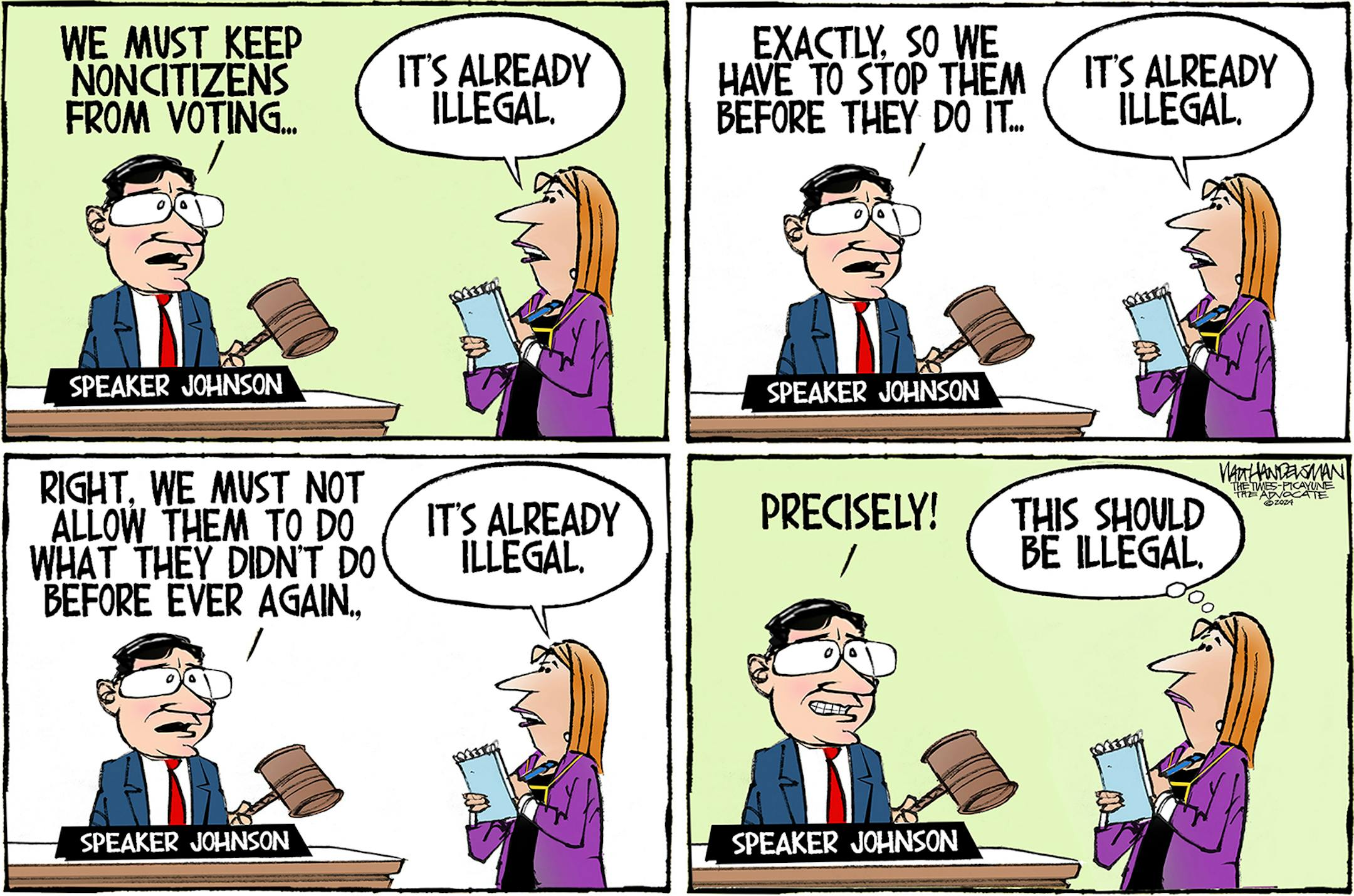 Editorial cartoon: Walt Handelsman on noncitizens voting