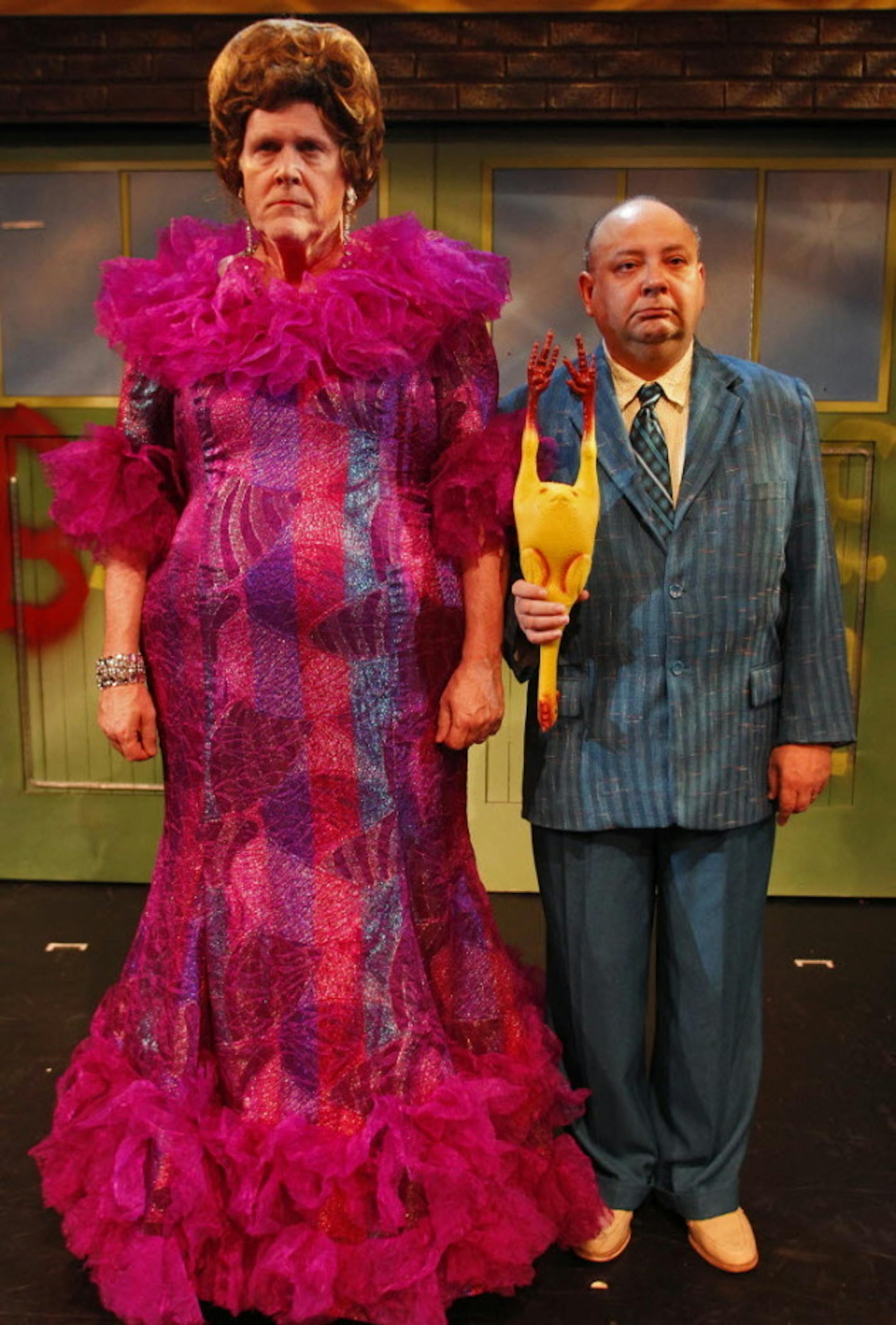 David Brinkley, left, as Edna Turnblad and Jay Albright as Wilbur Turnblad, in "Hairspray" at Chanhassen Dinner Theatres. Star Tribune photo by Marlin Levison.
