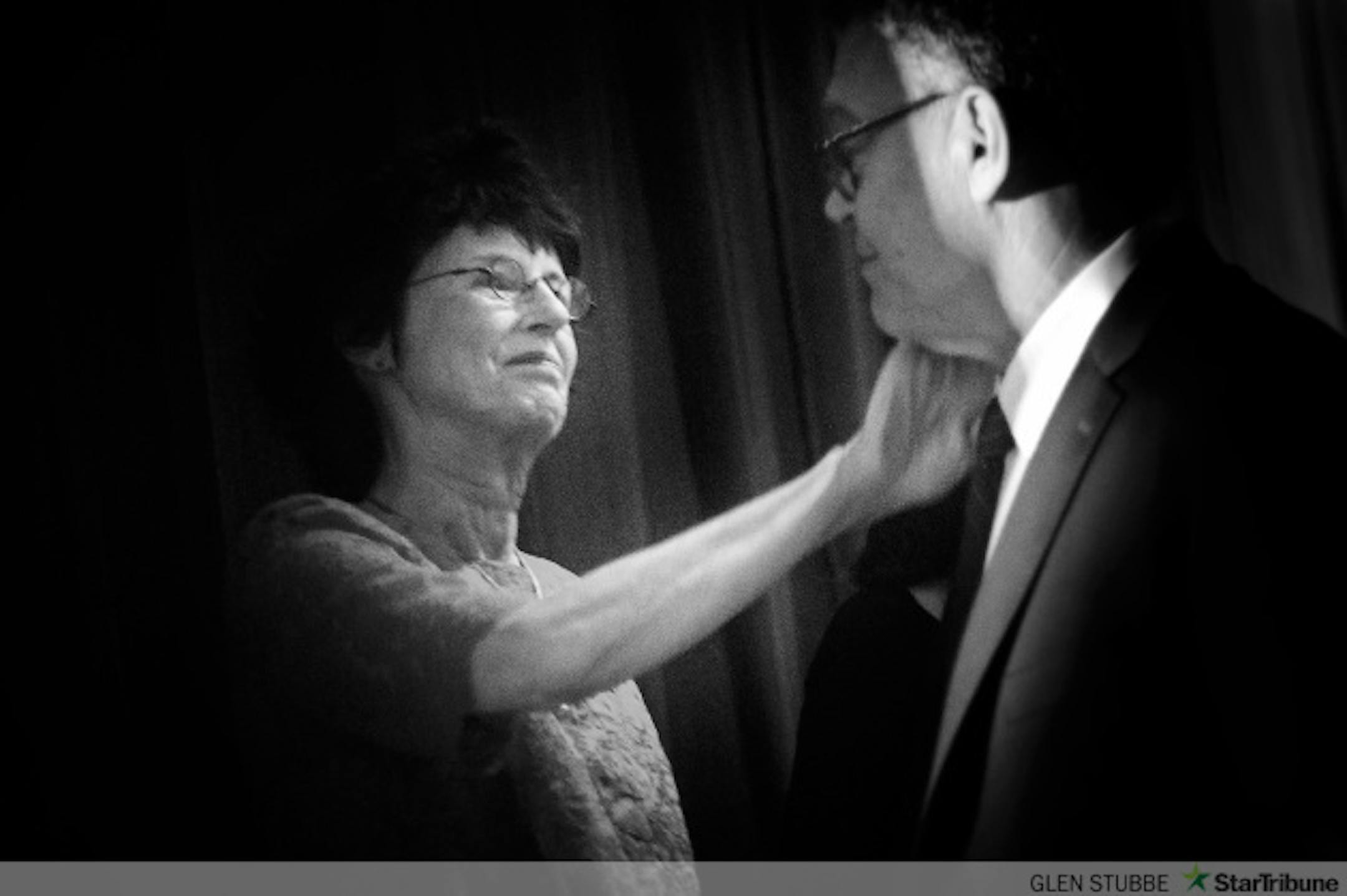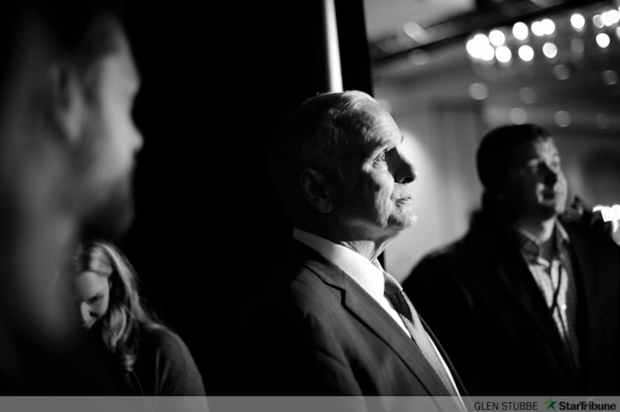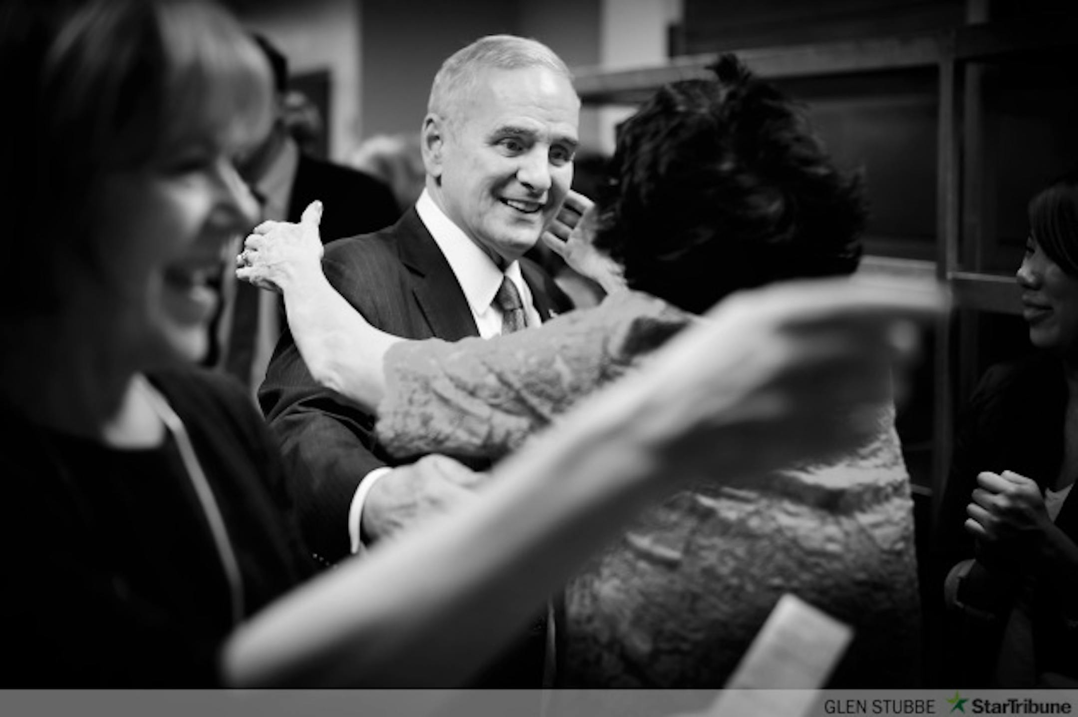 Seconds before taking the stage, Governor Mark Dayton drew a deep breath as Tina Smith introduced him.