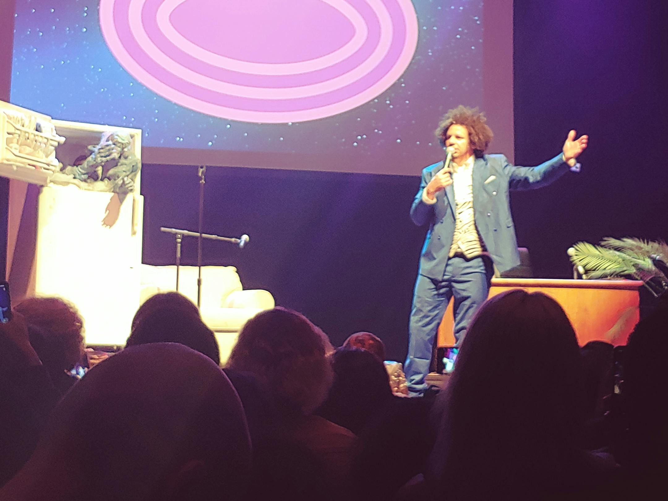 He lets his audience do the heavy lifting. A large chunk of the evening was dedicated to volunteers who allowed André to text nonsense message to ex-lovers. Two fans squared off in a ranch dressing chug-a-lug. The highlight of the evening: Neither of them vomited.