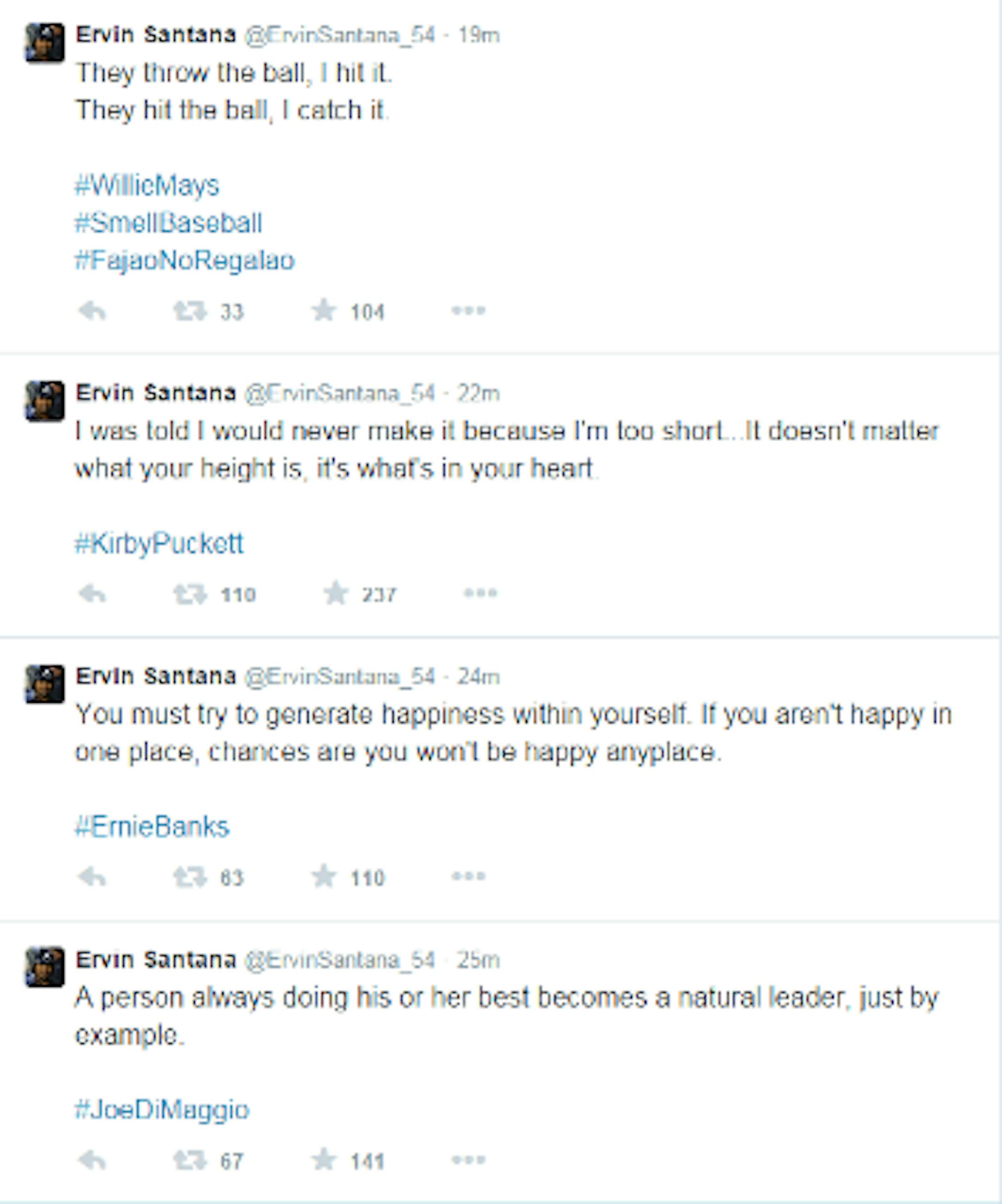 Free agent pitcher Ervin Santana, who the Twins are said to be pursuing heavily, has had a very productive morning on Twitter.