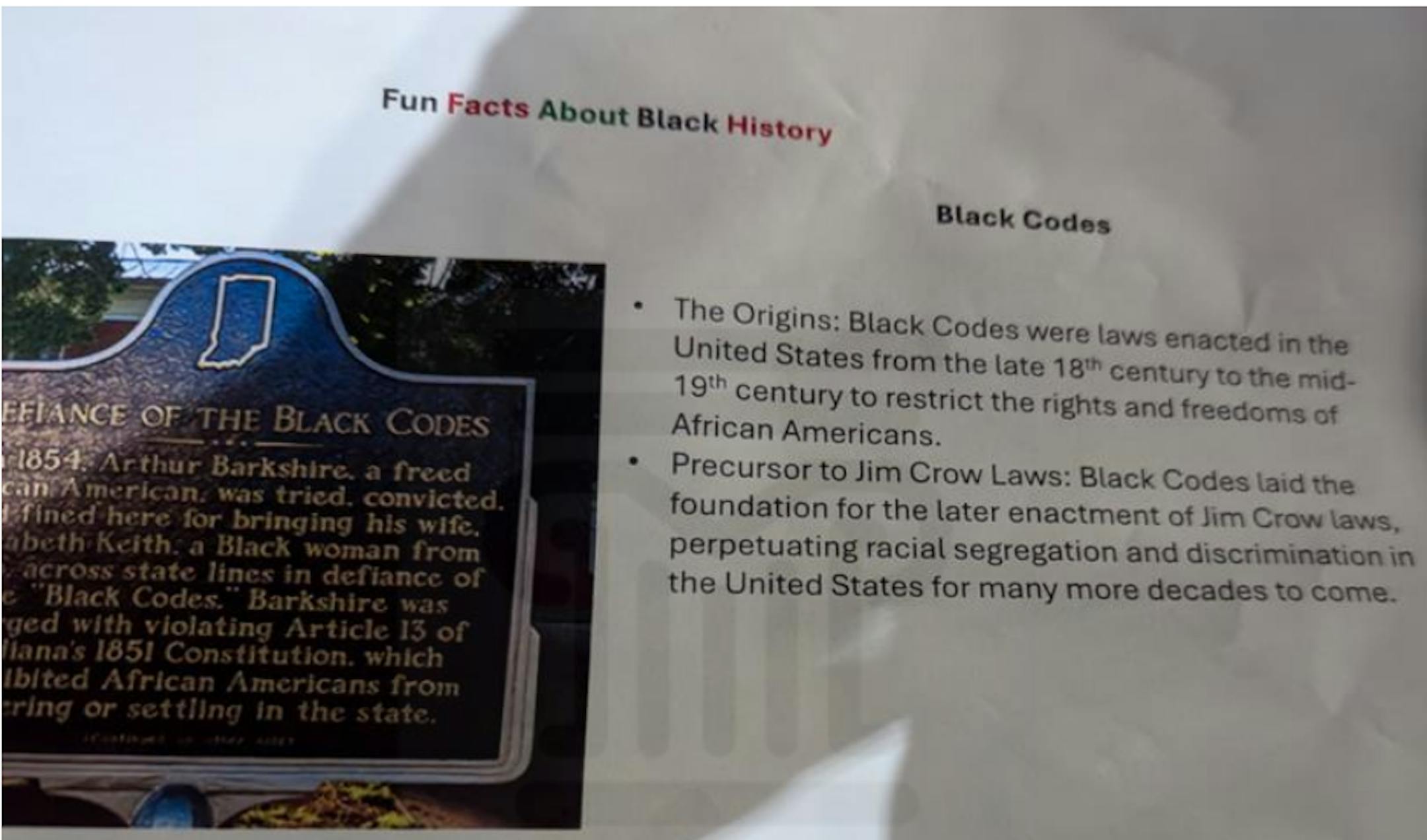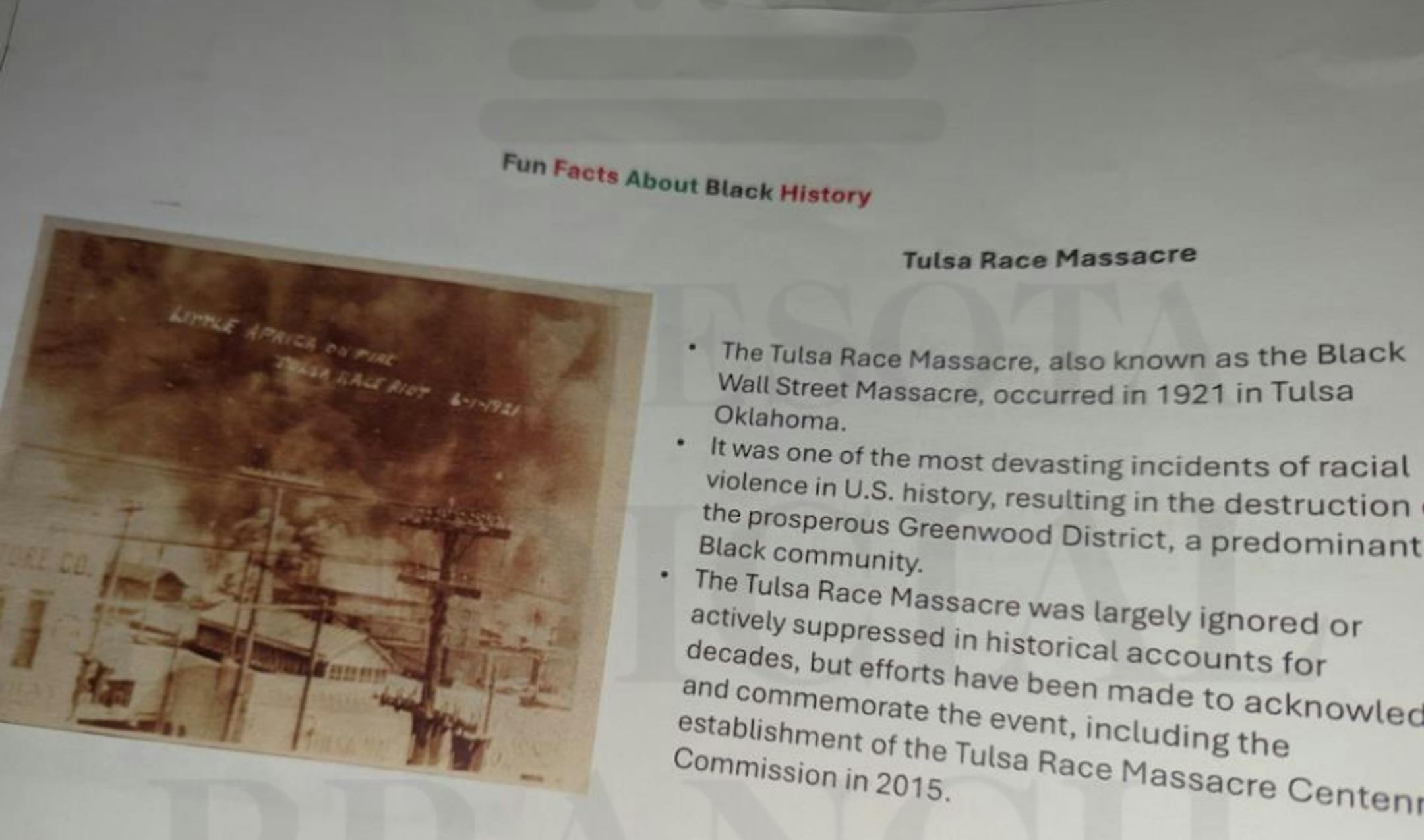 They were titled: “Fun Facts About Black History,” according to photos included in Tyus’ complaint.