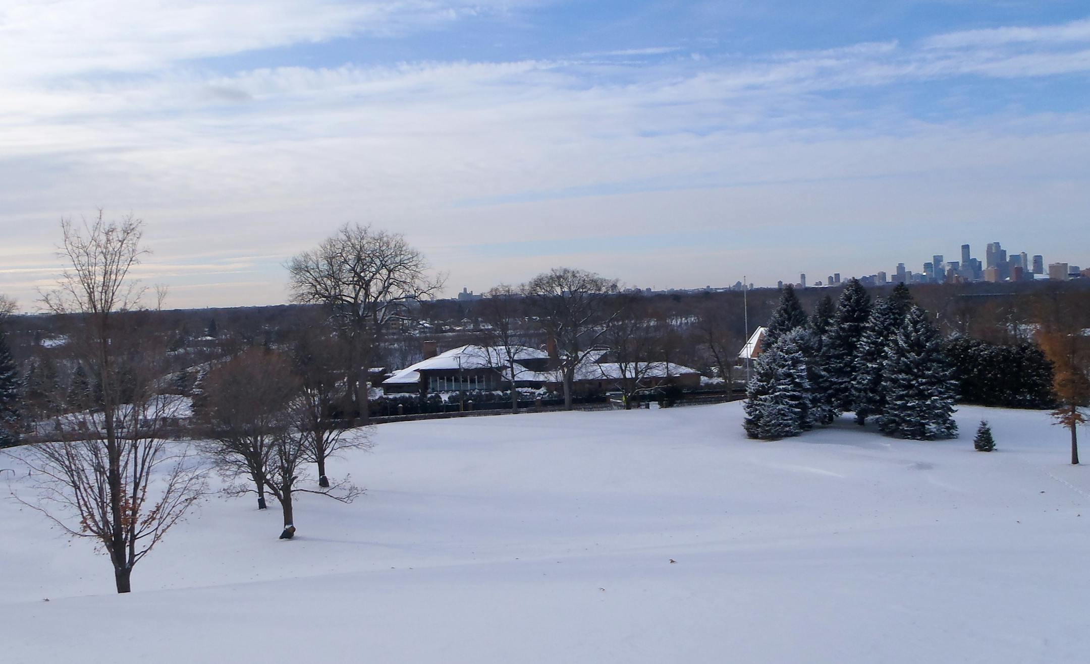 I asked for running snowshoes for Christmas to, you know, make winter more fun. Here's what I've discovered so far — golf courses! I've even identified my favorite golf course, Town & Country, on the bluffs of the Mississippi at Marshall Avenue in St. Paul.