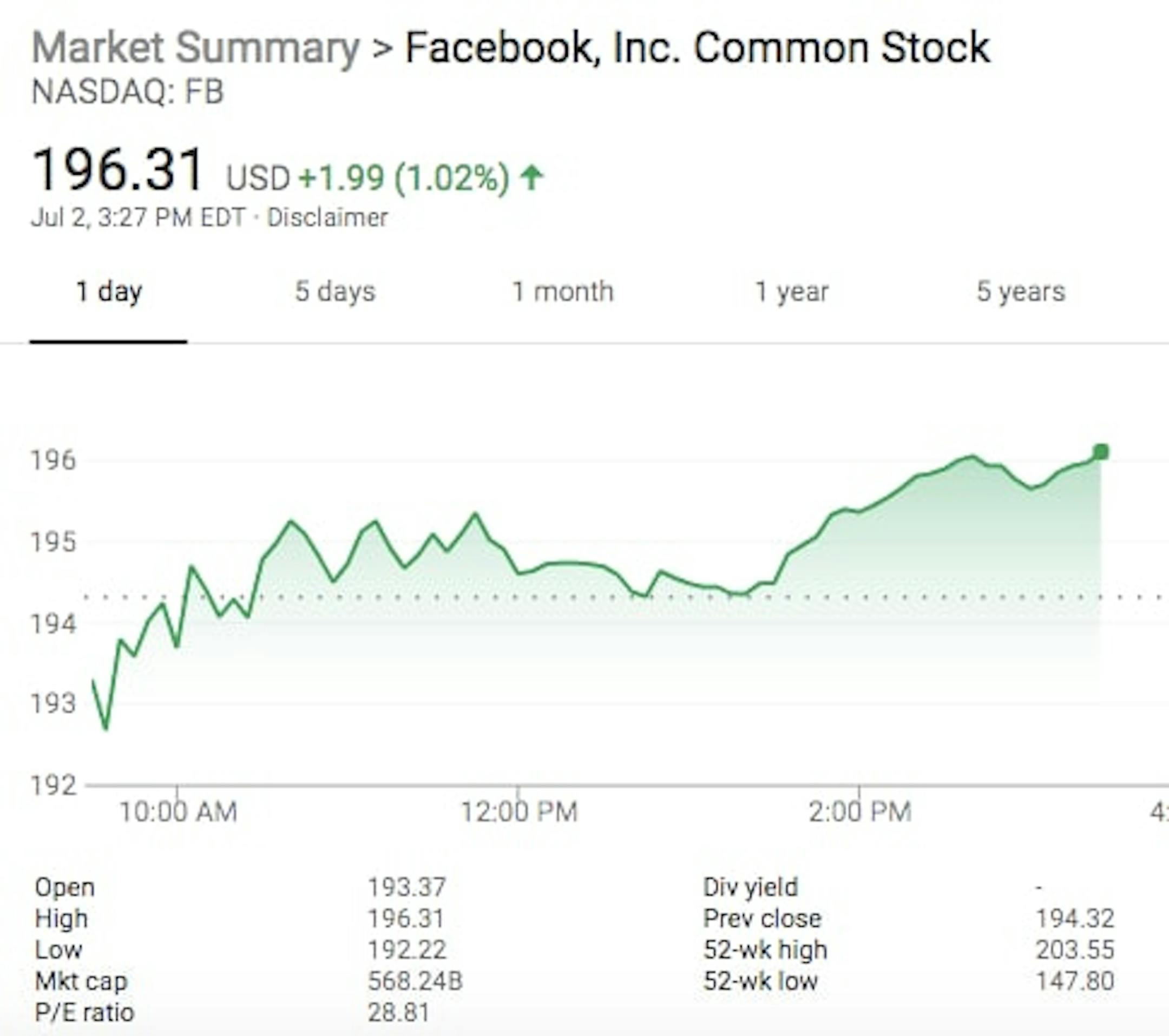 Facebook share price on July 2 (via Google)