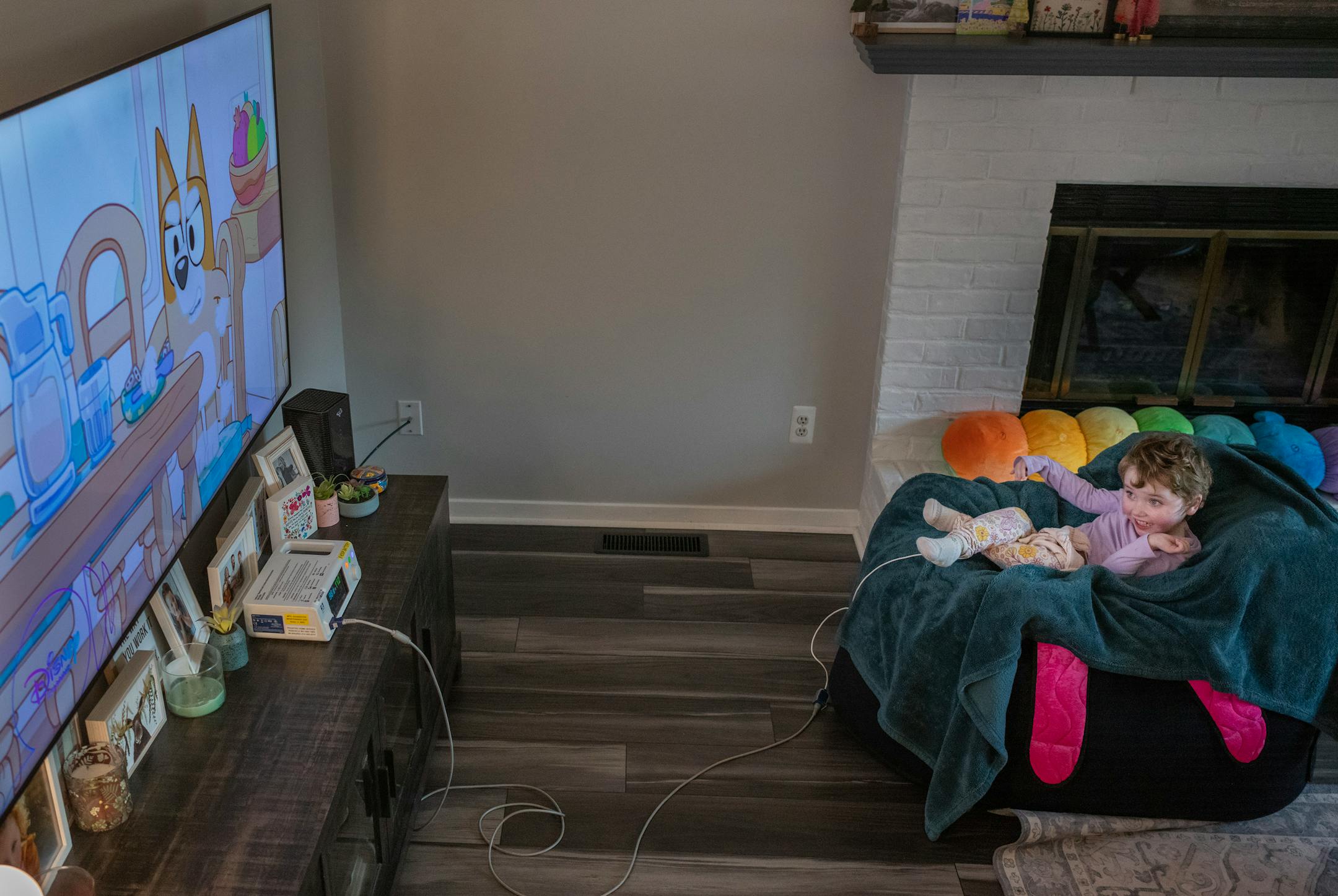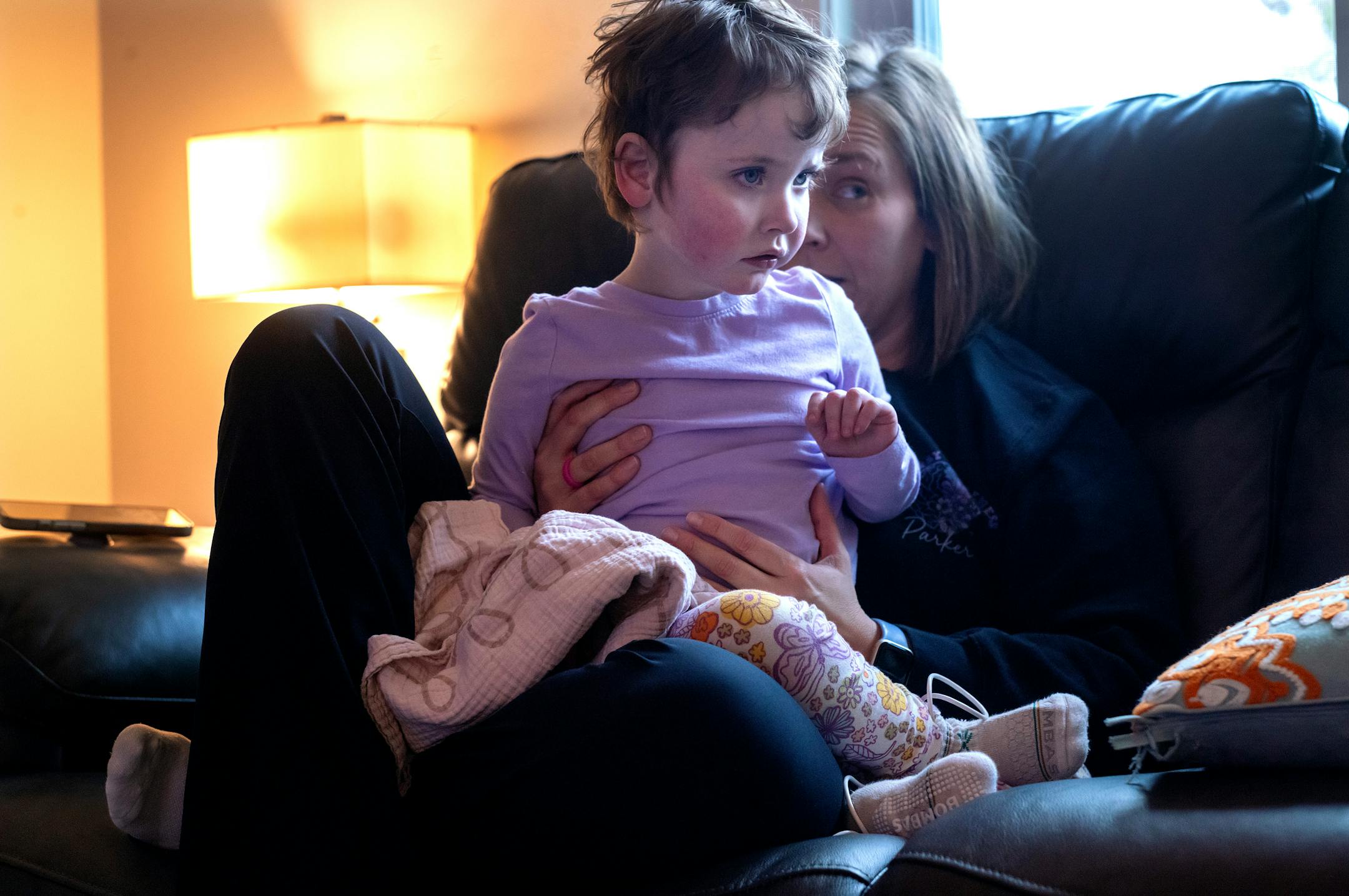 Parker sat cozily in floral pajama pants and a purple long-sleeve shirt last week. Anna McEnaney said Parker’s 7-year-old sister adores her like a baby doll. Parker loves watching Bluey and sticking her hands on the dark fur of Malcolm, the family’s “gentle giant” dog, the mother said.