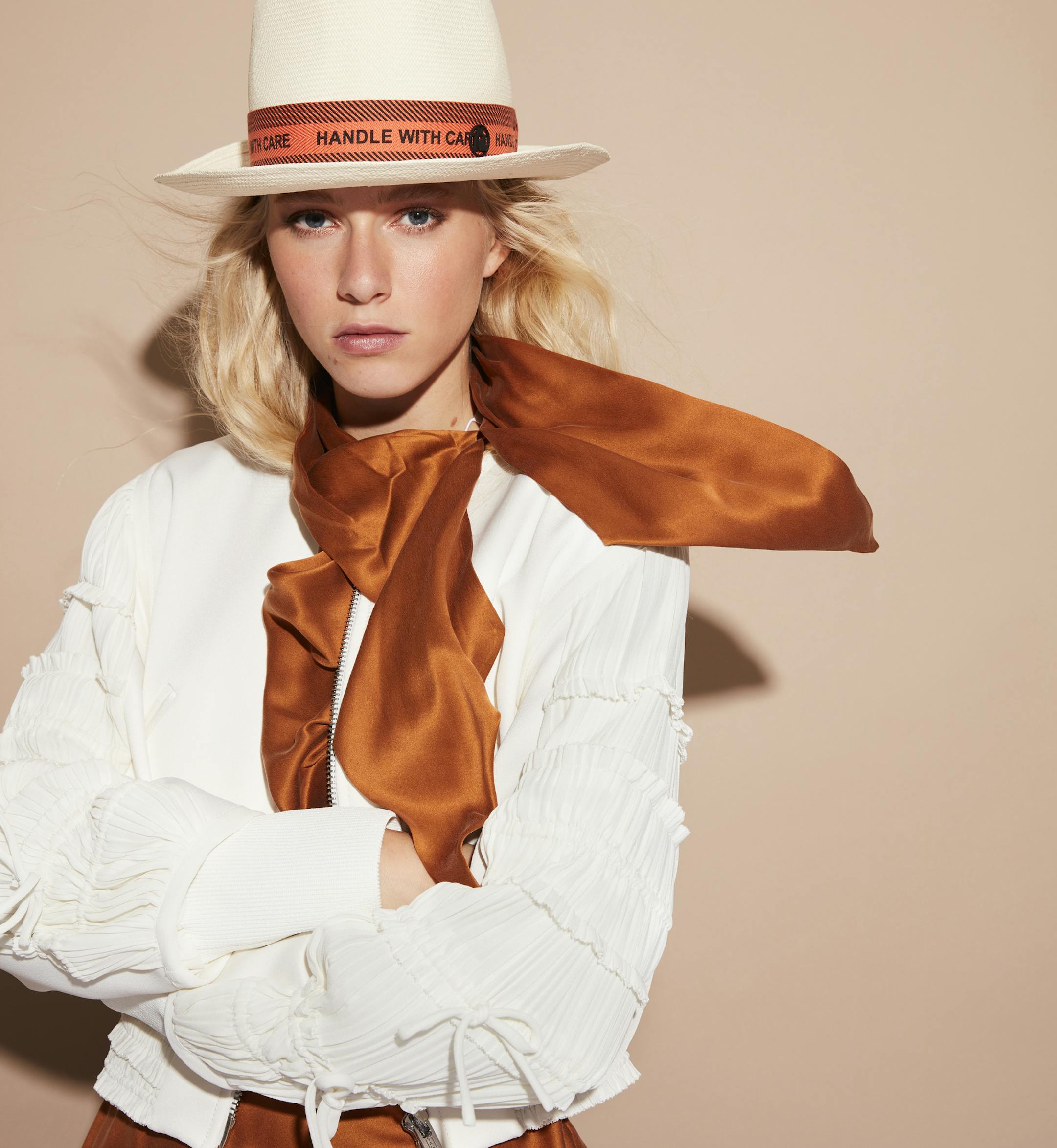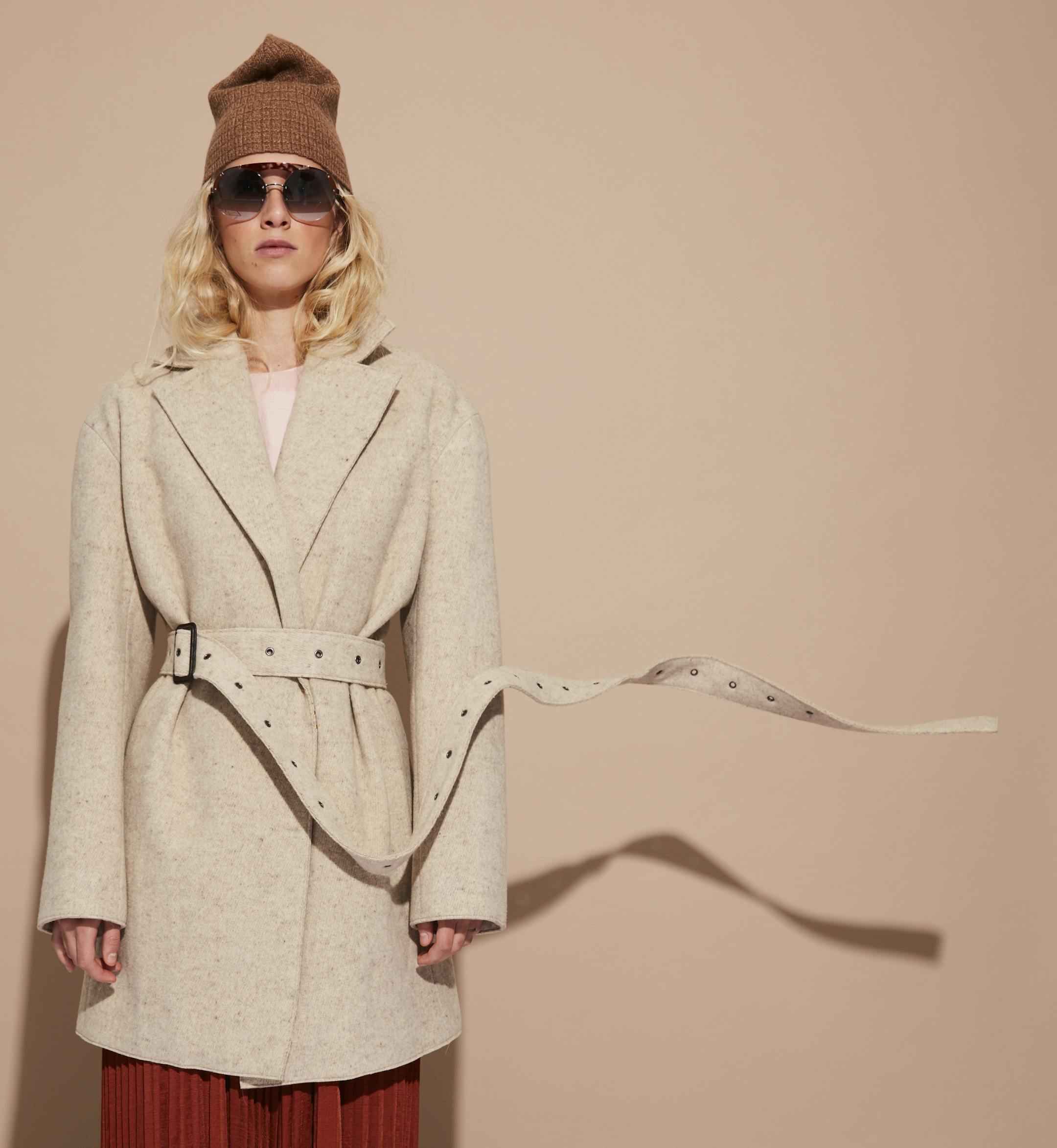 The feel of autumn is both warm and cool, with days heating up in the sunshine and evenings bringing a tinge of winter winds. This fall's palette captures that feeling in earthen hues pulled from a windswept desert scene: coral, oxide, ecru and fawn. Hats can be slouchy or floppy, but always chic. Jackets in leather, or belted or puffy, all answer the season's chill, and vibrant scarves add glamour. Here, our desert inspirations.