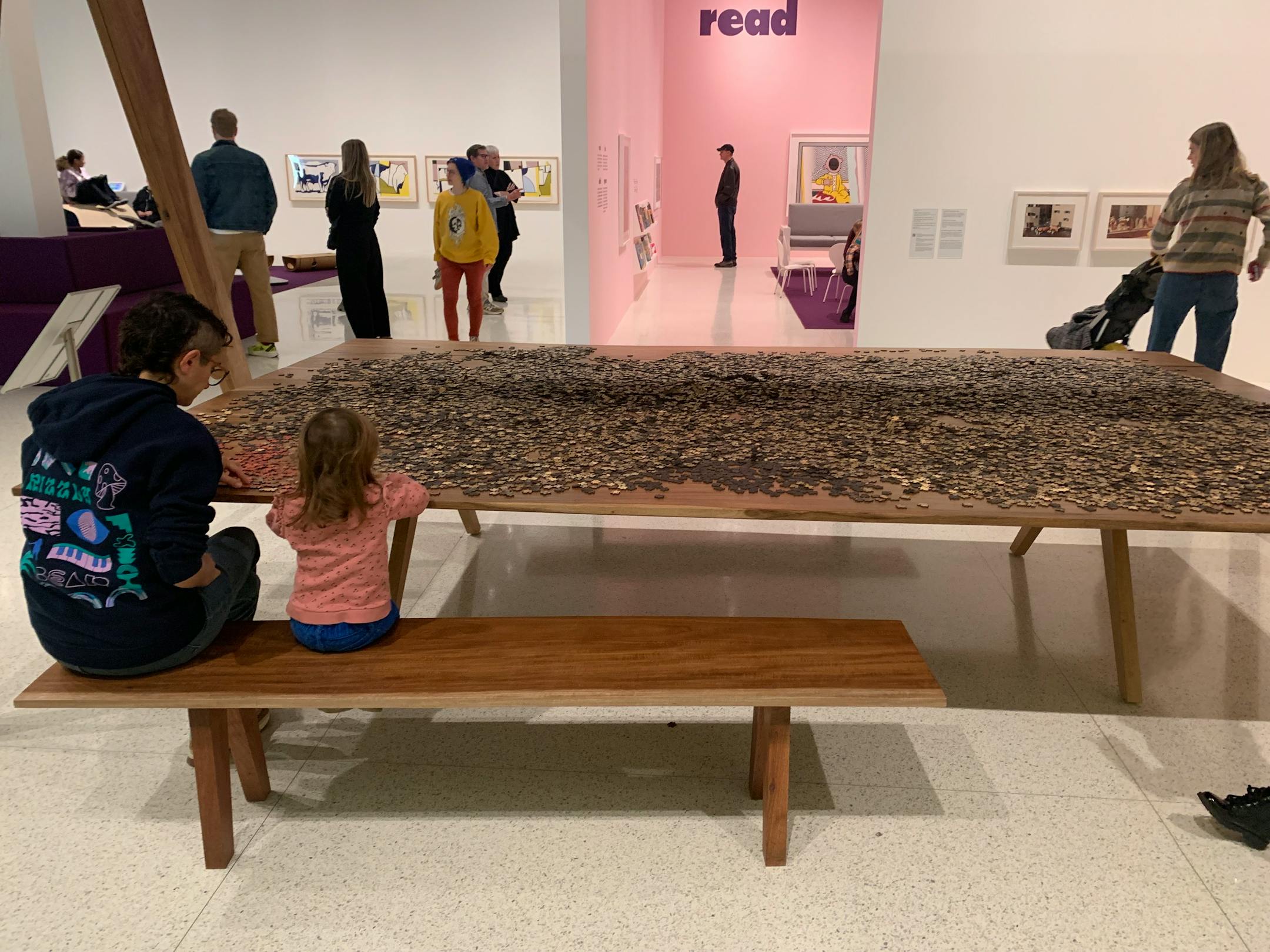 As a parent, my only criticism of the show was including Erwin Wurm’s “Choose One Pullover and Stay in Front of a Wall.” An artwork encouraging hundreds of kids to play dress up from a shared bin of sweaters was clearly not created by someone who has spent days combing lice out of their children’s hair and washing every single bedsheet and stuffy. I opted for taking the kids outside to run around in the sculpture garden instead.
