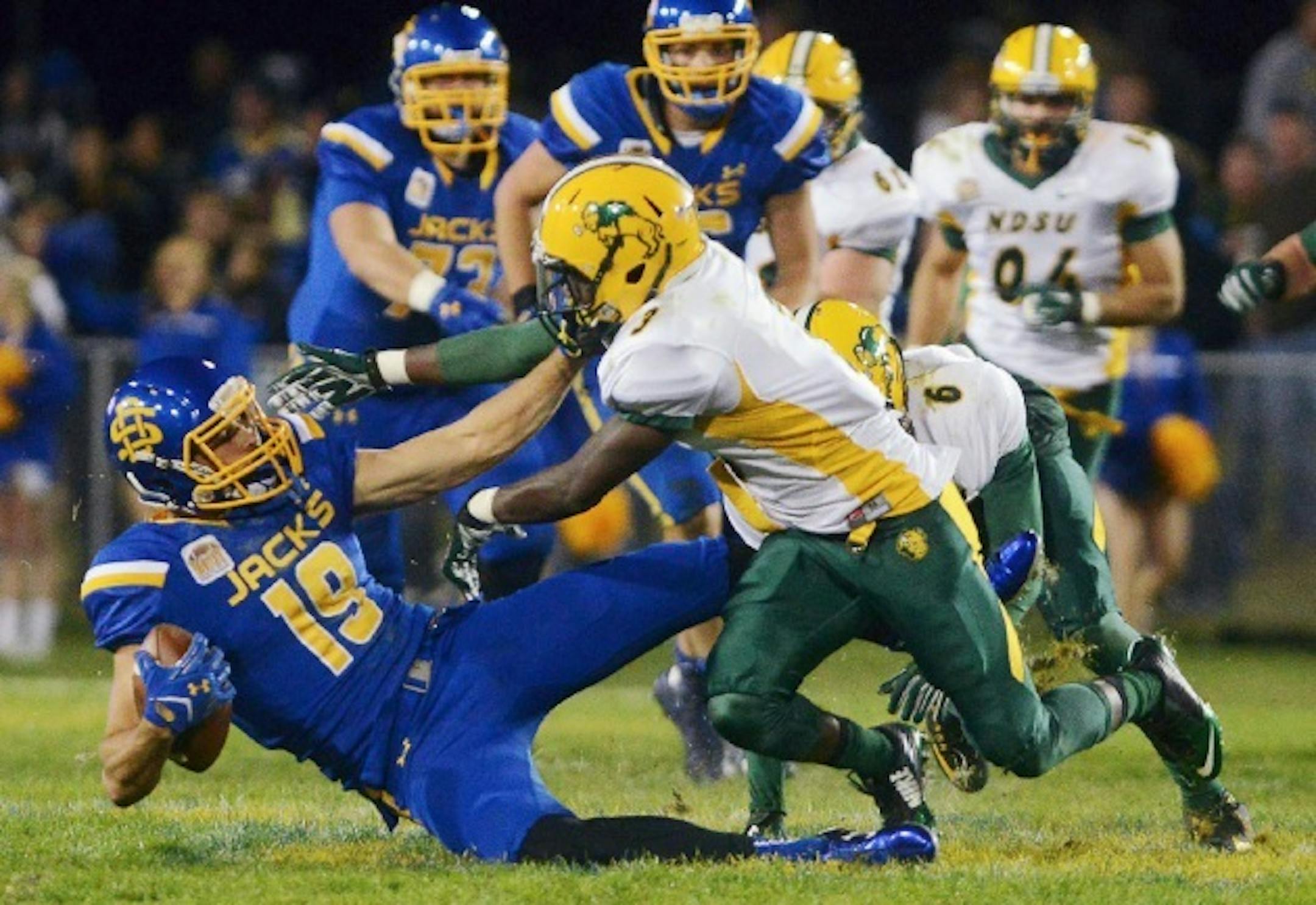The Jackrabbits scored a touchdown with two seconds remaining in the fourth quarter, rallying back from a 14-point deficit to pull off the stunner just three weeks after the Bison upset the Big Ten's nationally ranked Iowa.