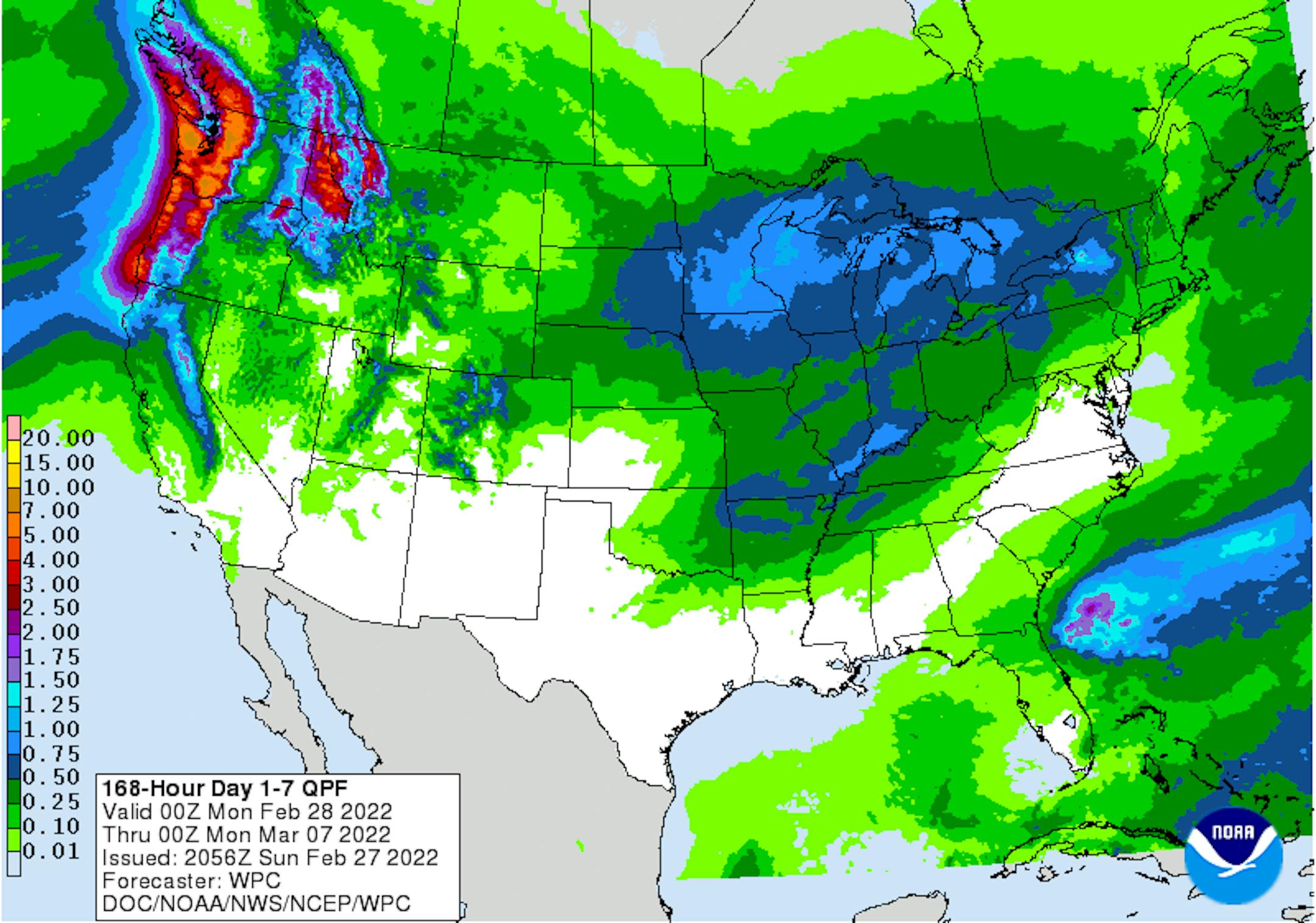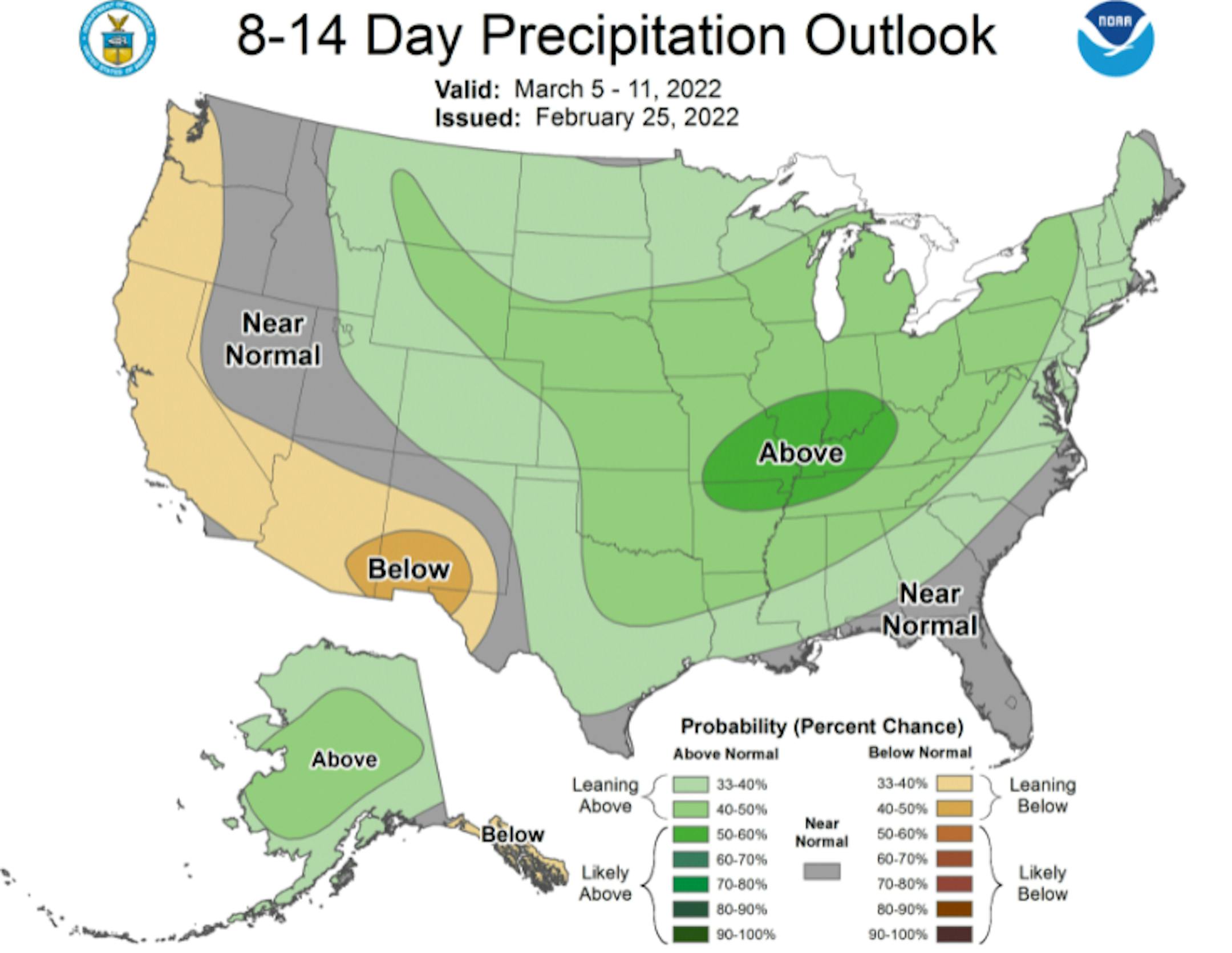 The extended weather outlook through the week ahead shows somewhat active weather developing with a bigger storm in place later this week. The weekend storm could bring a wide range of precipitation potential.