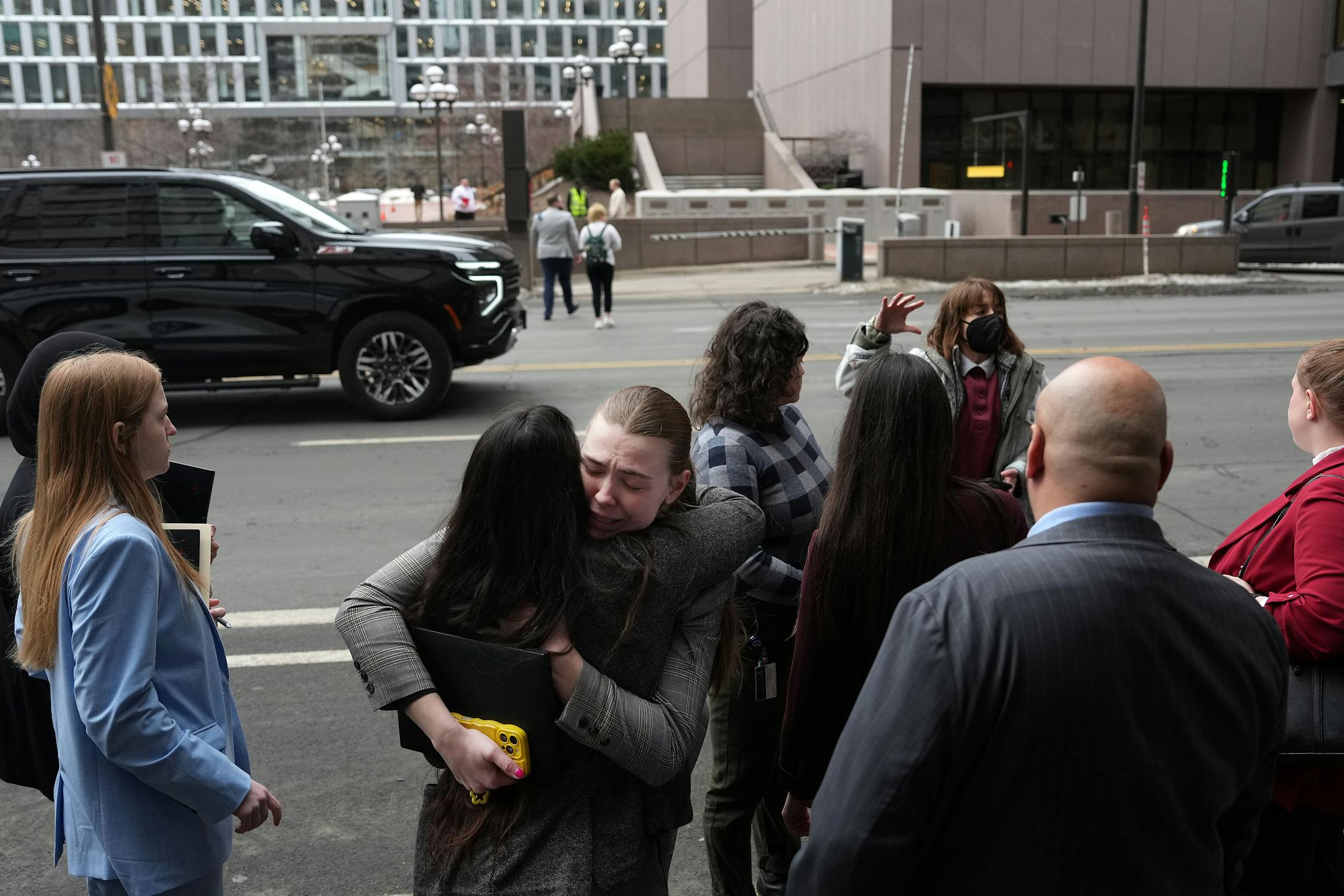Officers led him down the escalators and through the outdoor plaza where a Subaru Outback was waiting. Lawyers and observers gave chase and screamed demands to see a warrant. They surrounded the Subaru, which had Illinois plates, with one woman standing in front of the car with her hands firmly planted on the hood. Others told her to not get hurt. She moved backward as the car moved forward, completed a U-turn and drove away down 3rd Avenue S.