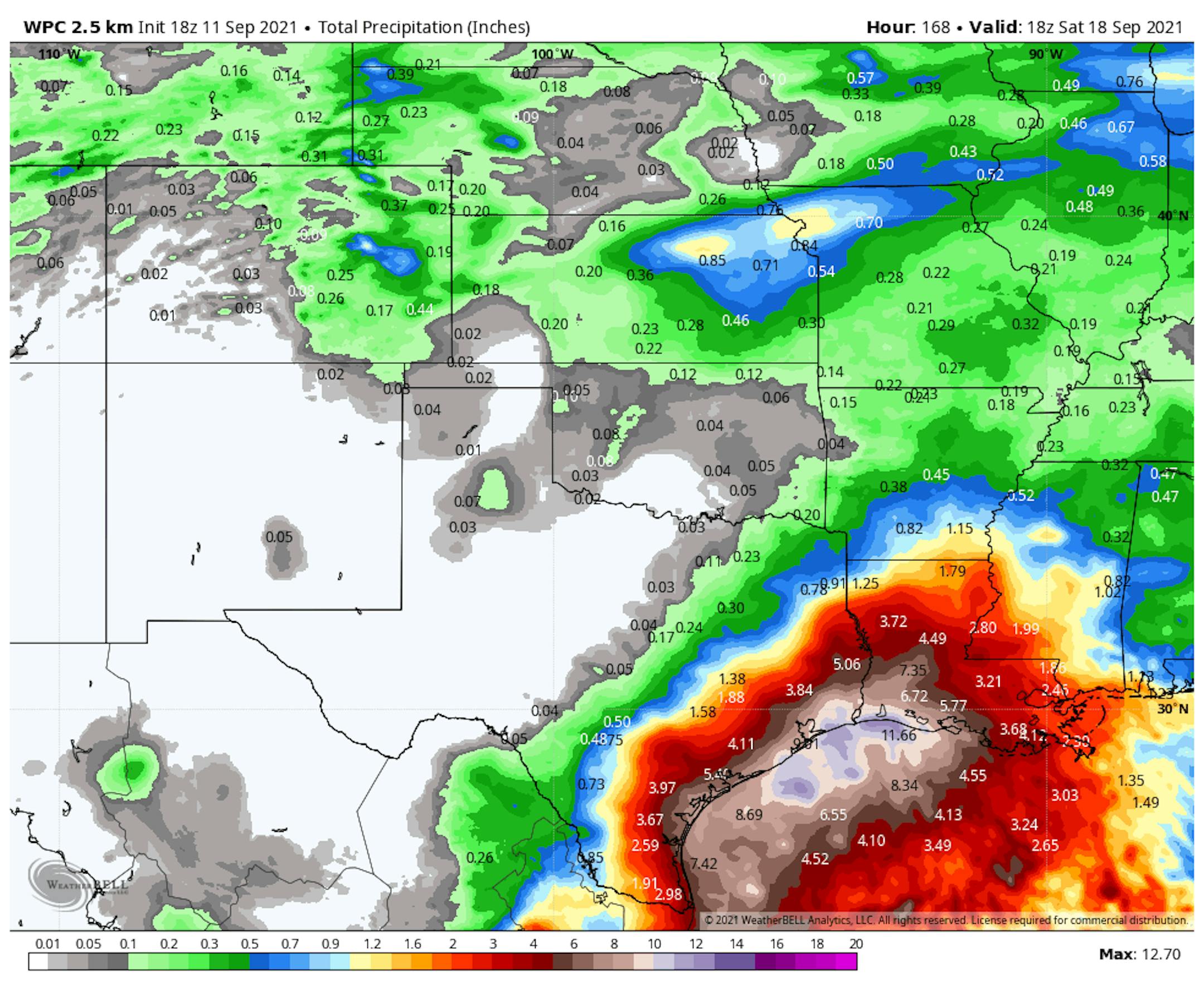 Latest model runs suggest several inches of rain from the Coastal Bend of Texas to Louisiana as we head through the week ahead. Flash flood concerns can't be ruled out in some of the heaviest rain bands.
