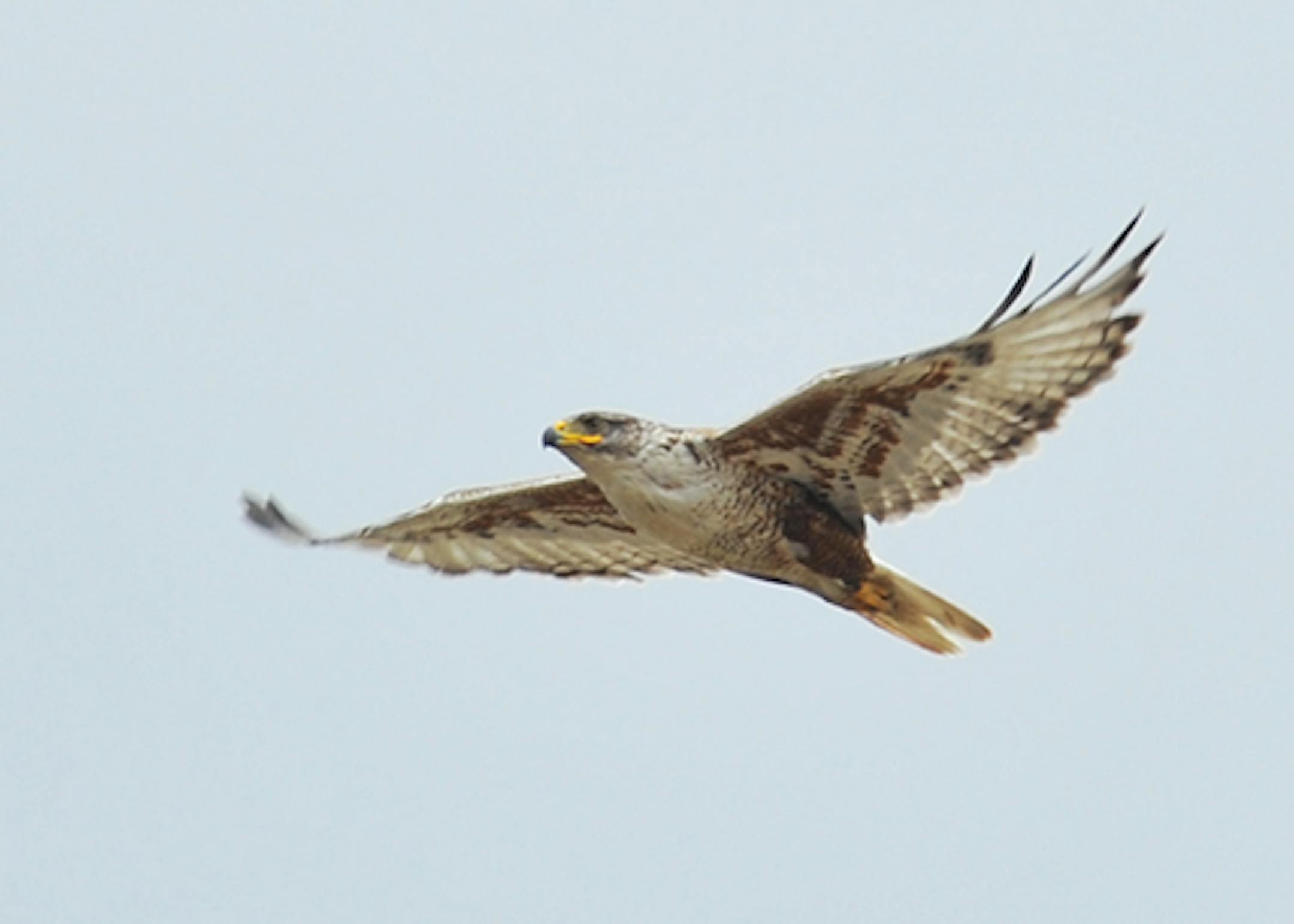 Ferruginous Hawk, the largest of North America's hawks, is a tough find in Minnesota. The bird's usual range barely gets into eastern South Dakota. Minnesota Ferruginous are rare strays. If you're looking to add one to your Minnesota list you can look a long time; luck helps.