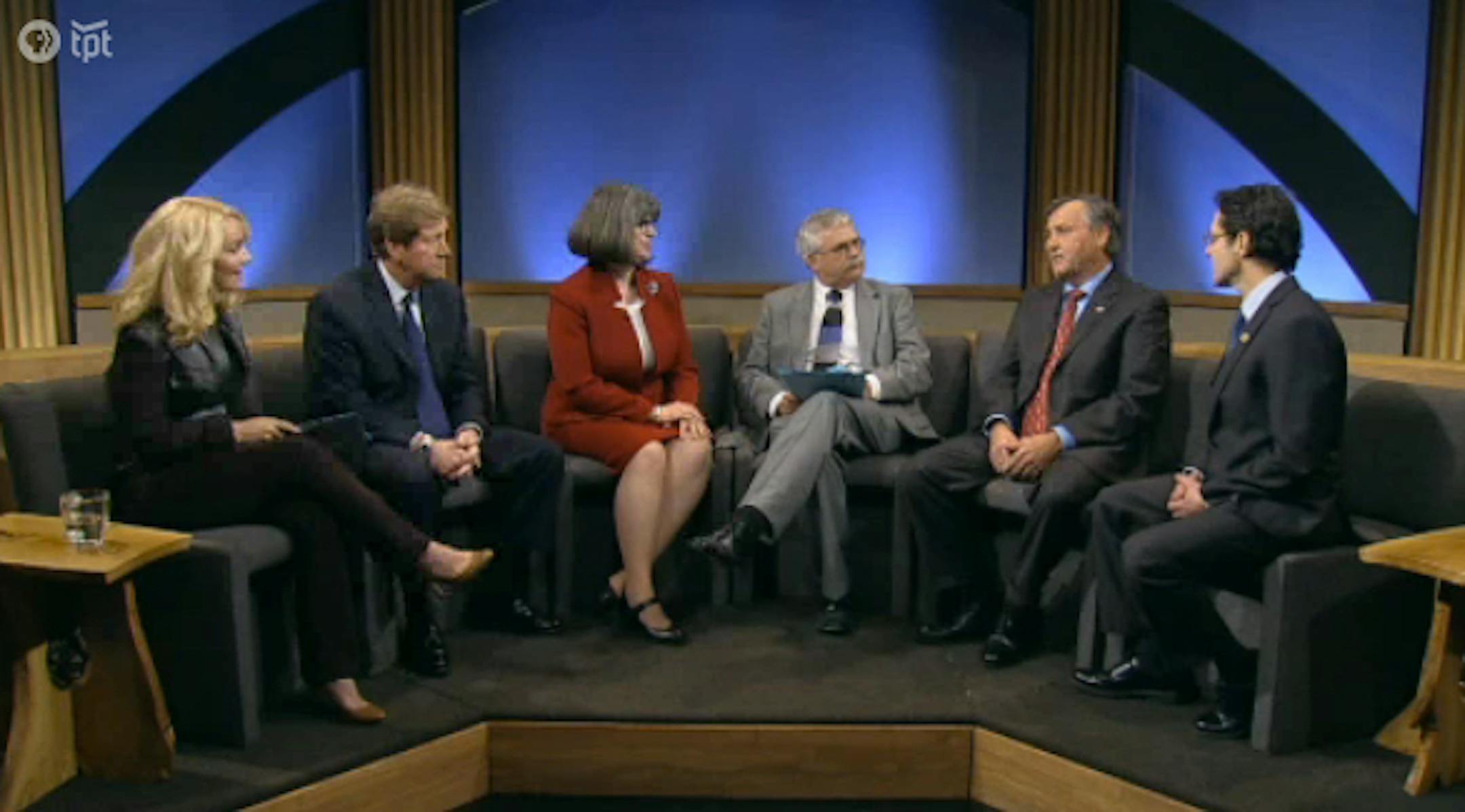 The 15-minute debate was broadcast live tonight on the Twin Cities Public Television public affairs program "Almanac."