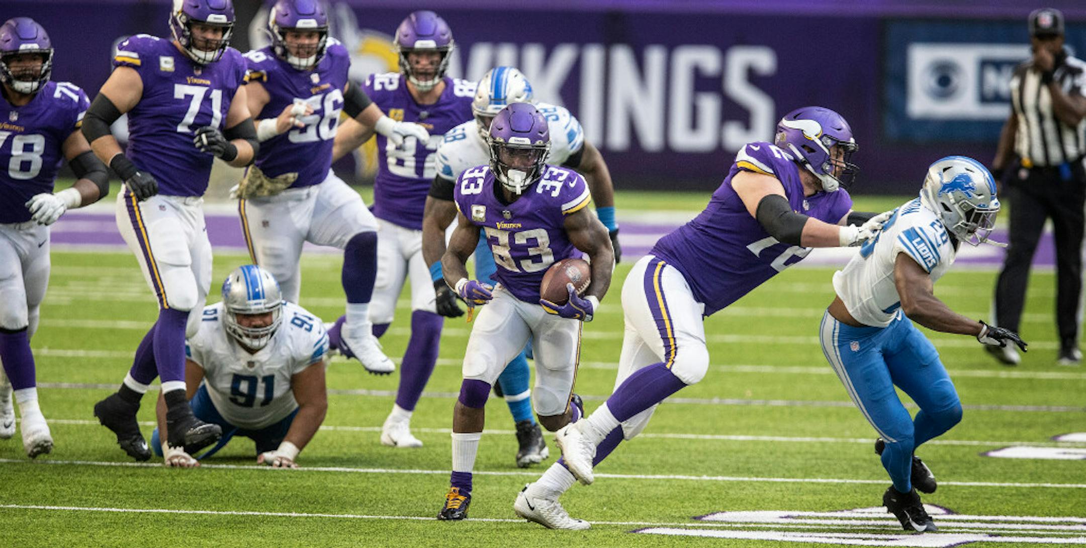 "Yeah, it's a lot better," coach Mike Zimmer said. "Riley Reiff is playing really well right now, Garrett Bradbury, I think Dakota [Dozier's] been playing well. I think [Ezra] Cleveland's been doing a nice job since he's been in there, and [Brian] O'Neill just keeps improving each and every week and year as he's continued his progression. They're doing really well. Dalvin helps them, too, just as much as they help Dalvin. It's a combination of things."